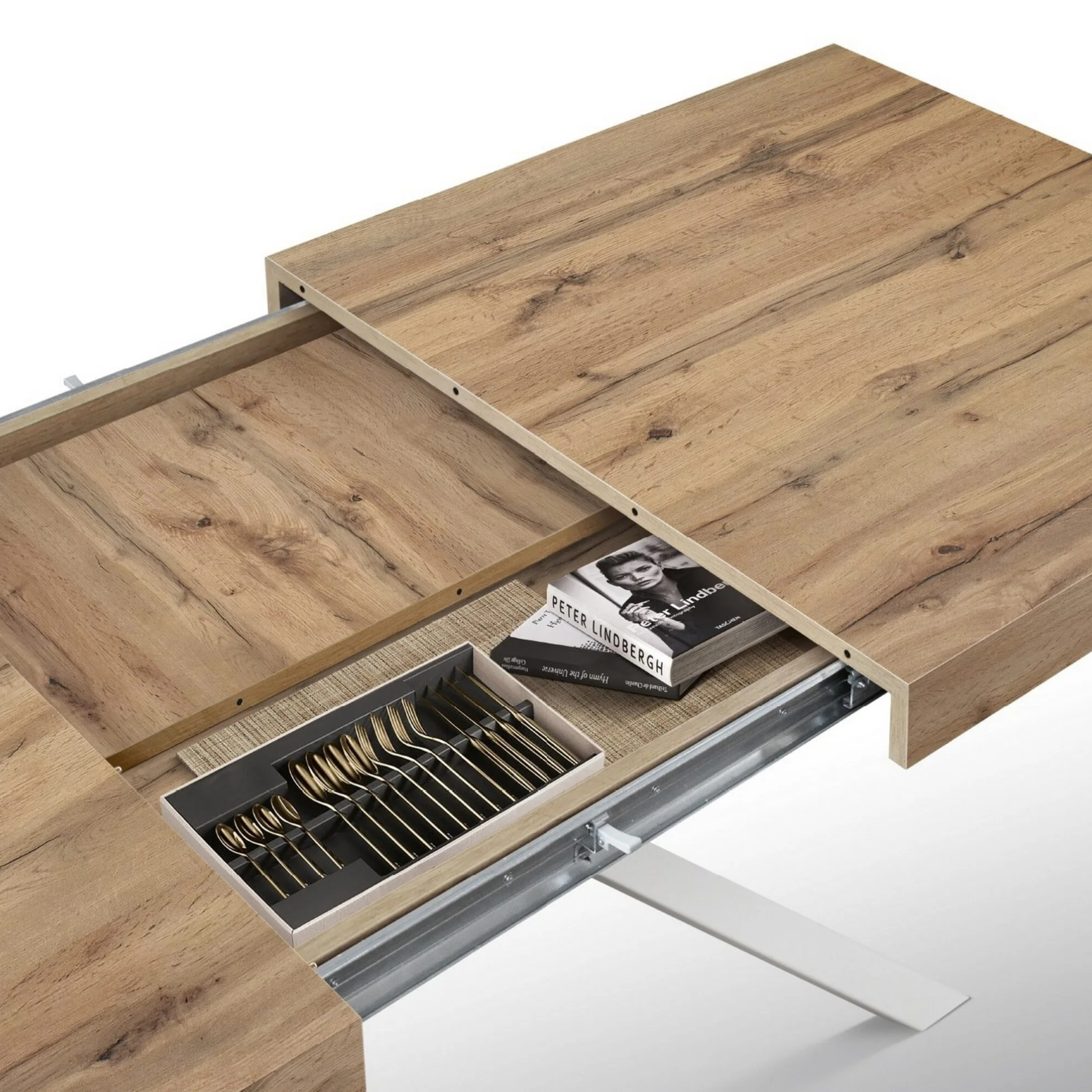 Allungamento Pratico: L'allunga centrale da 50 cm permette di passare comodamente da 4 a 6 posti a sedere.