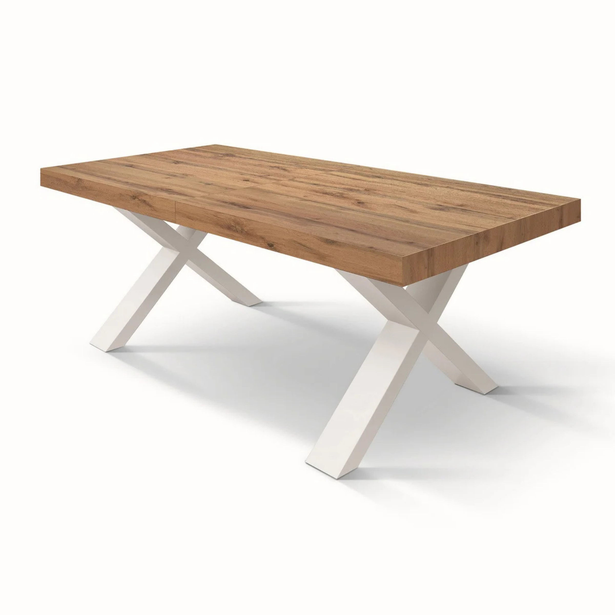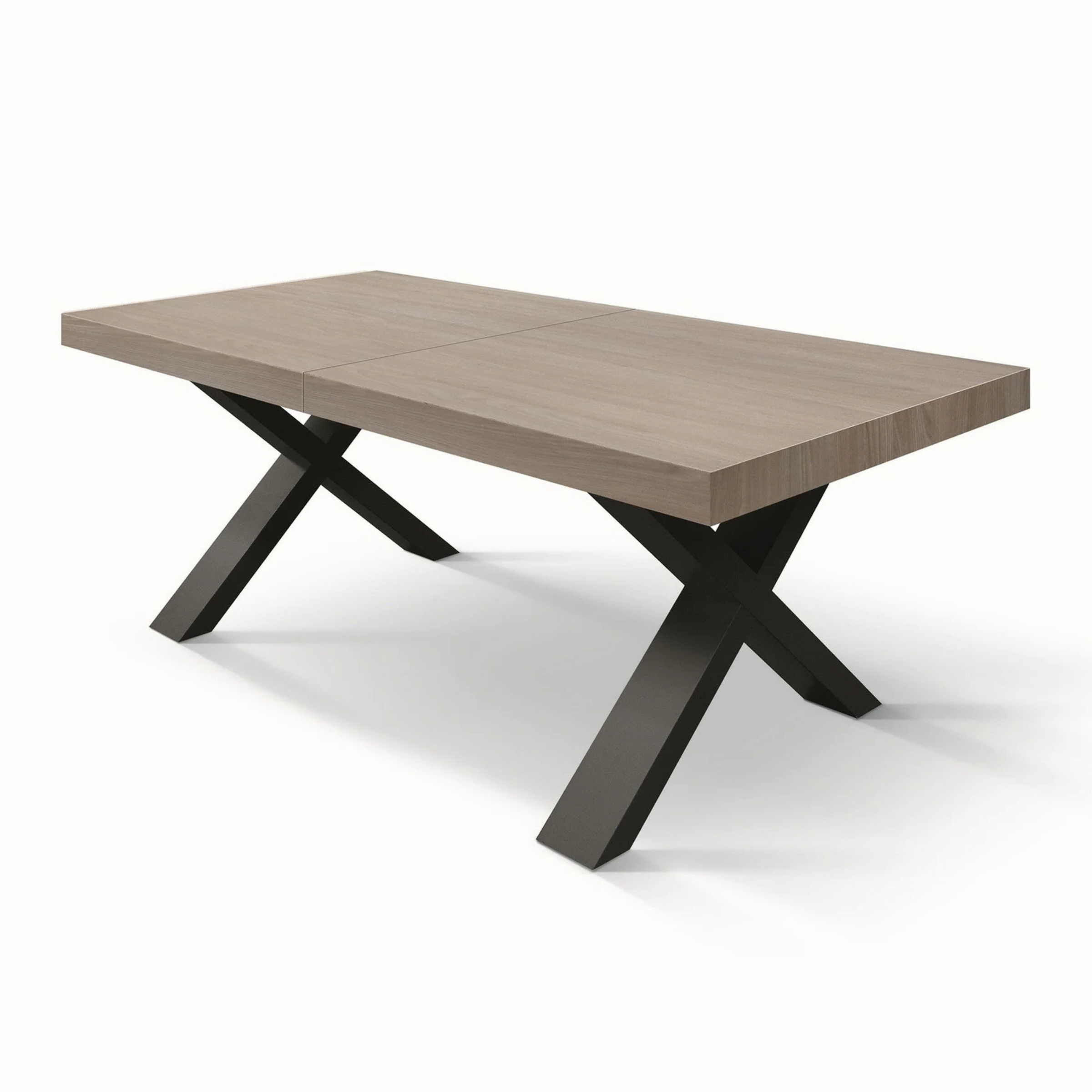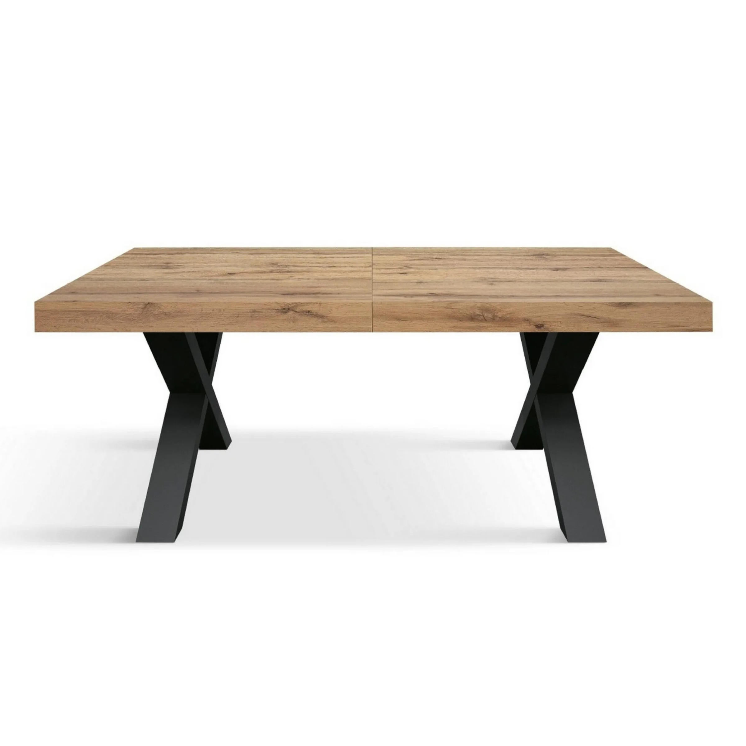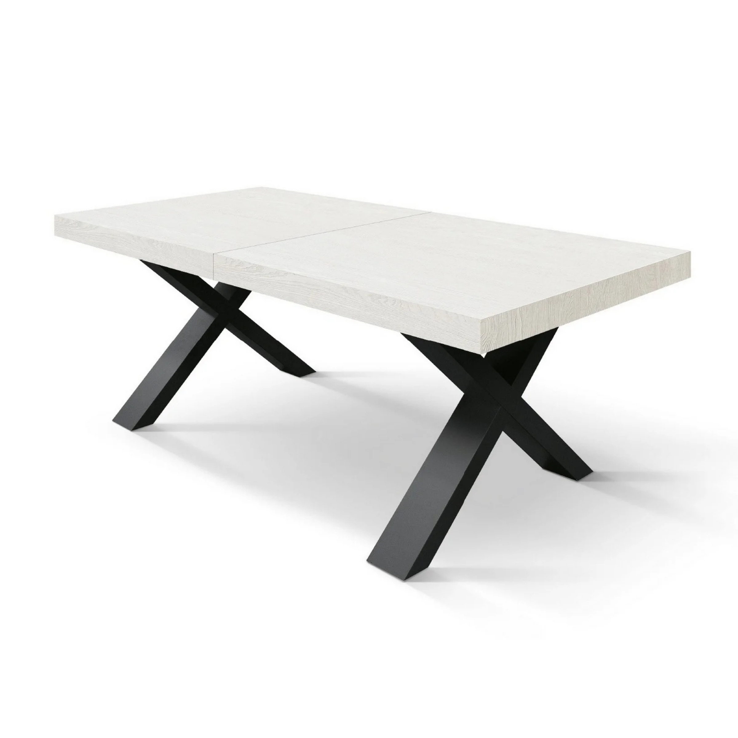 Il piano in legno nobilitato melaminico dona una luminosità naturale e una texture accogliente, mentre le gambe incrociate (disposte nel caratteristico design a X) garantiscono una stabilità impeccabile e un tocco deciso in stile Industrial.
