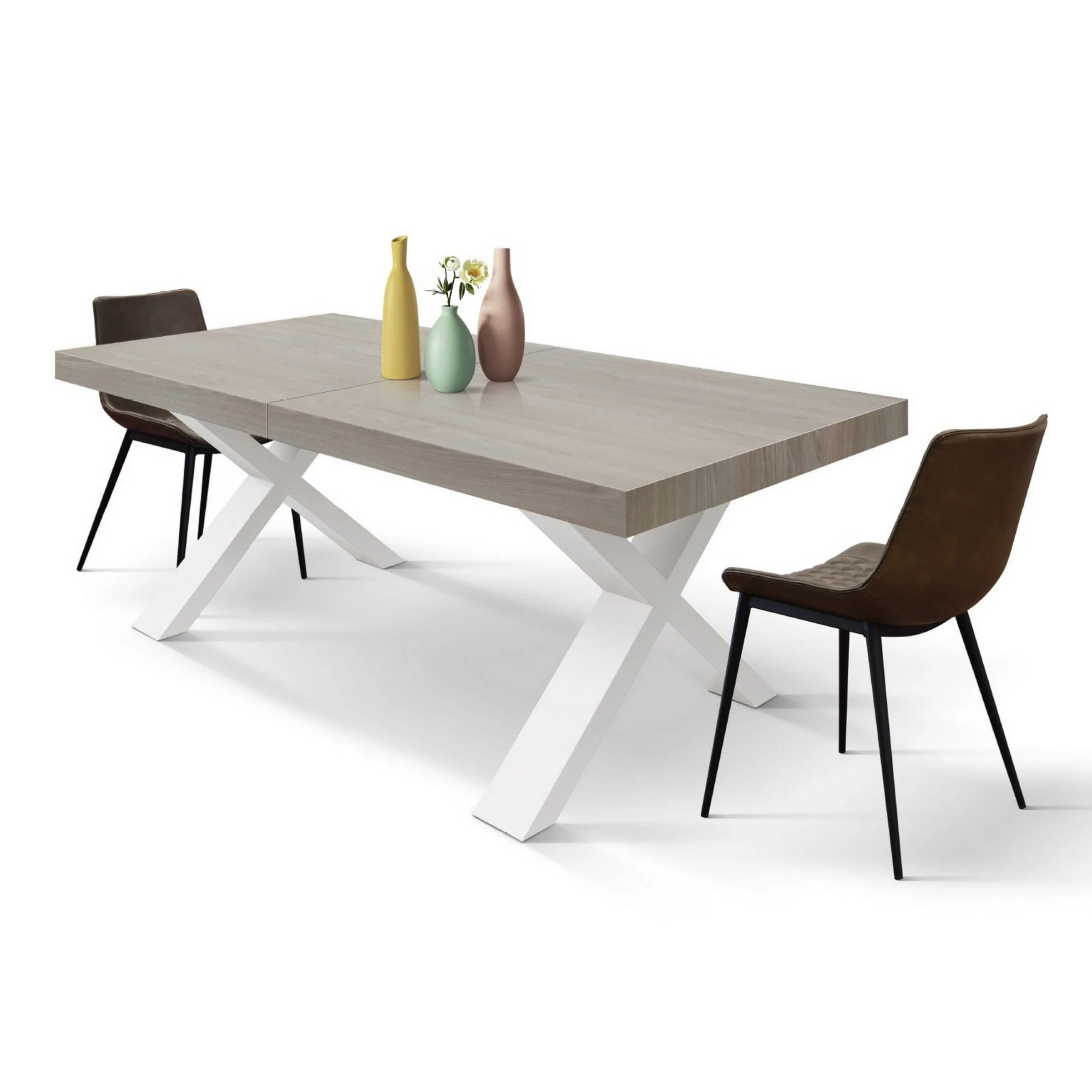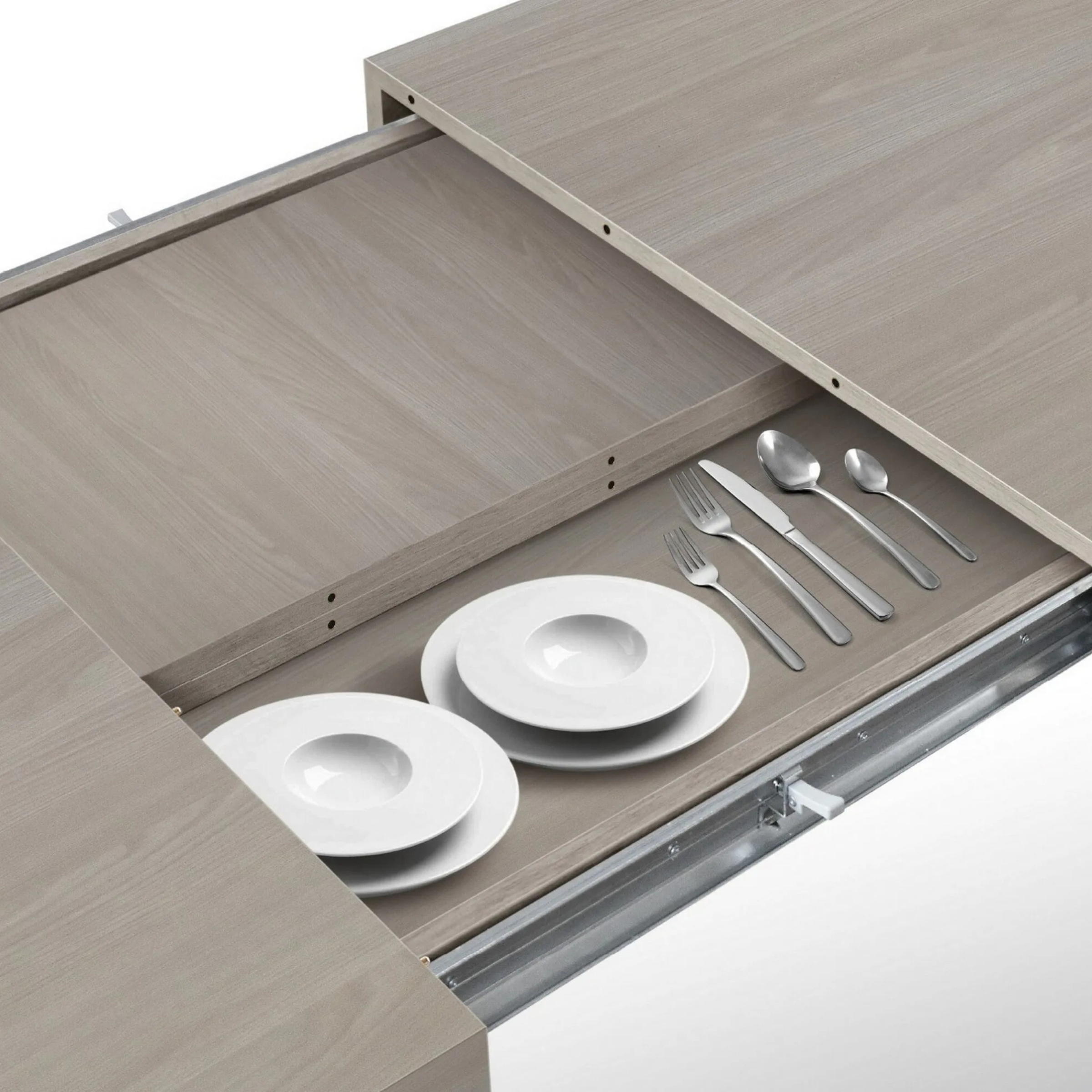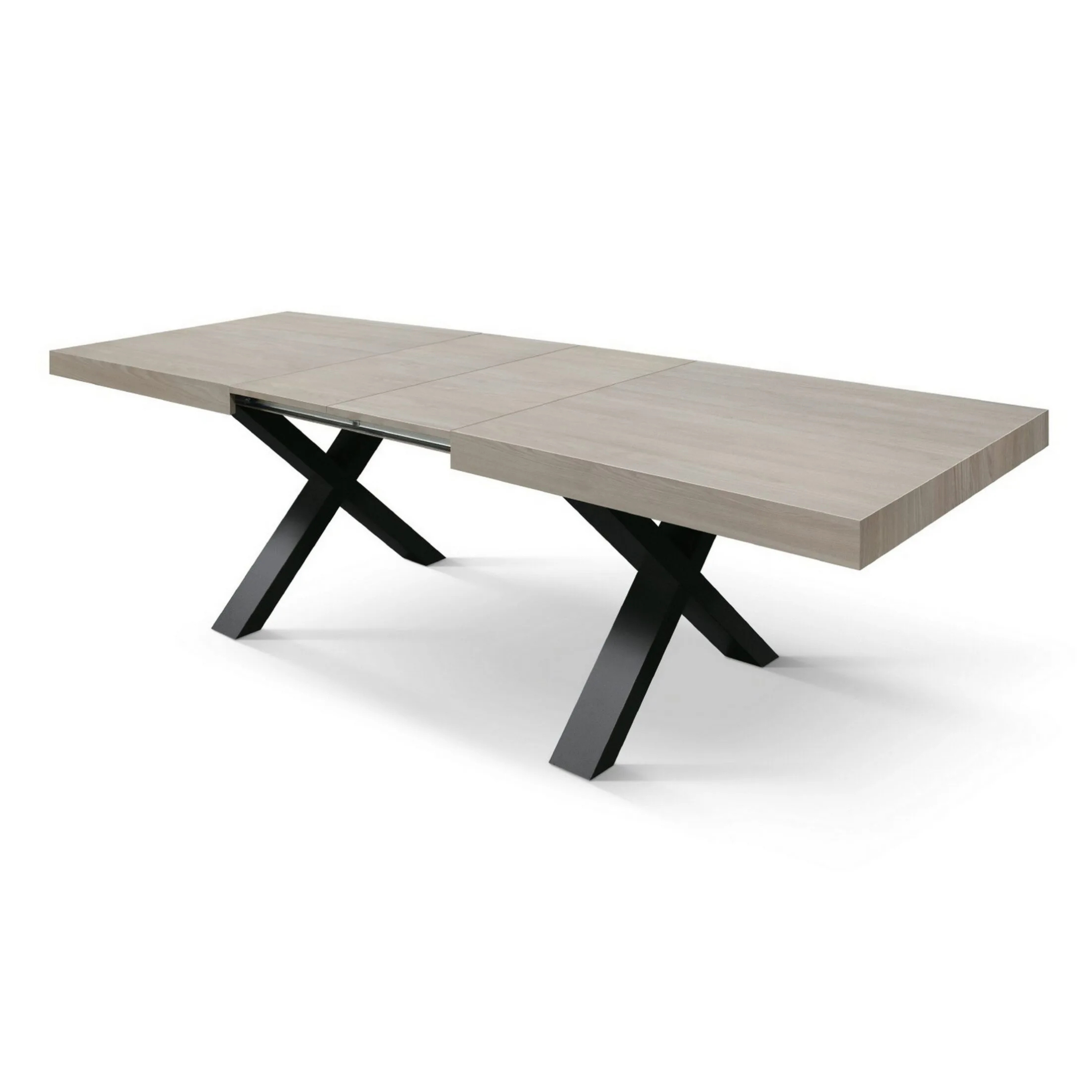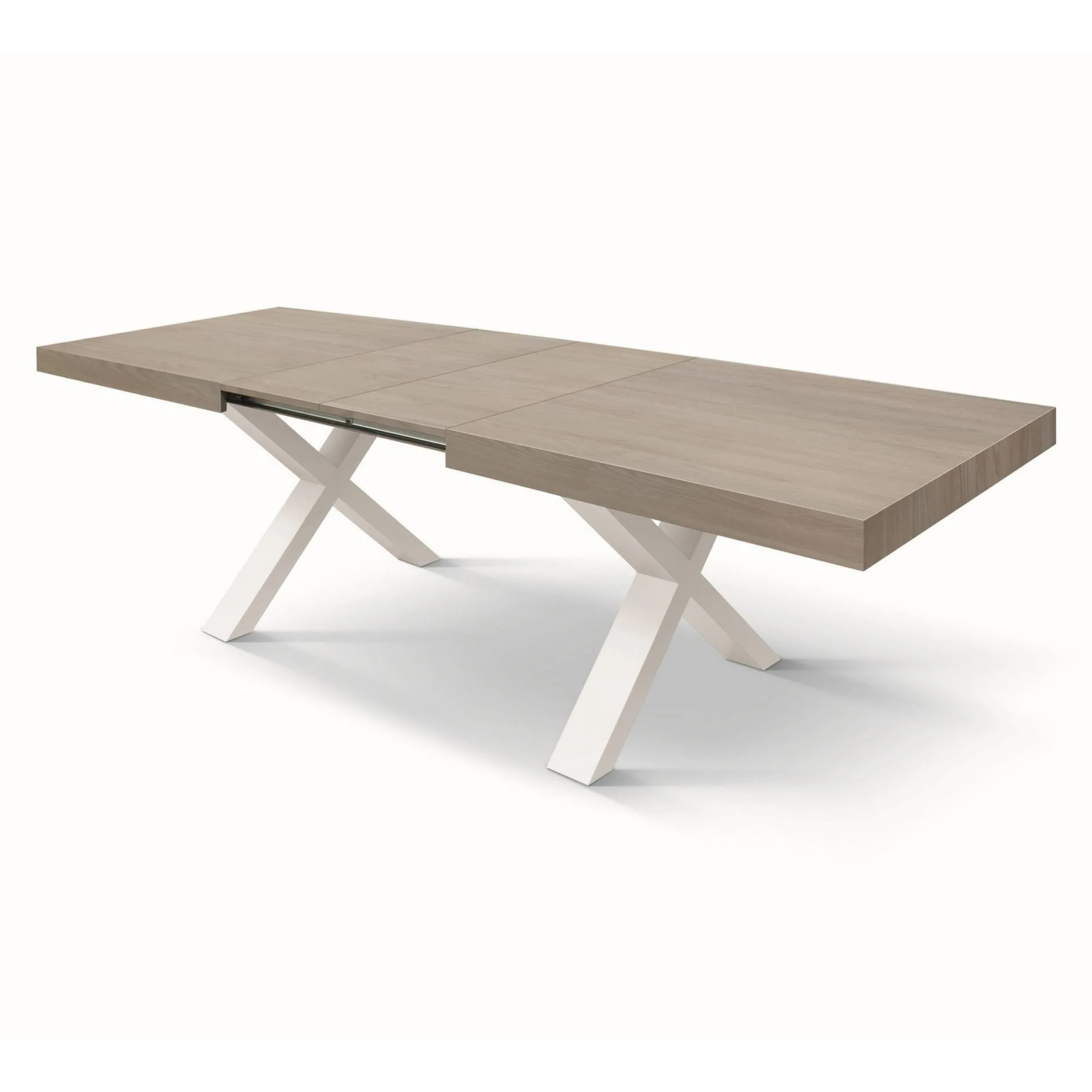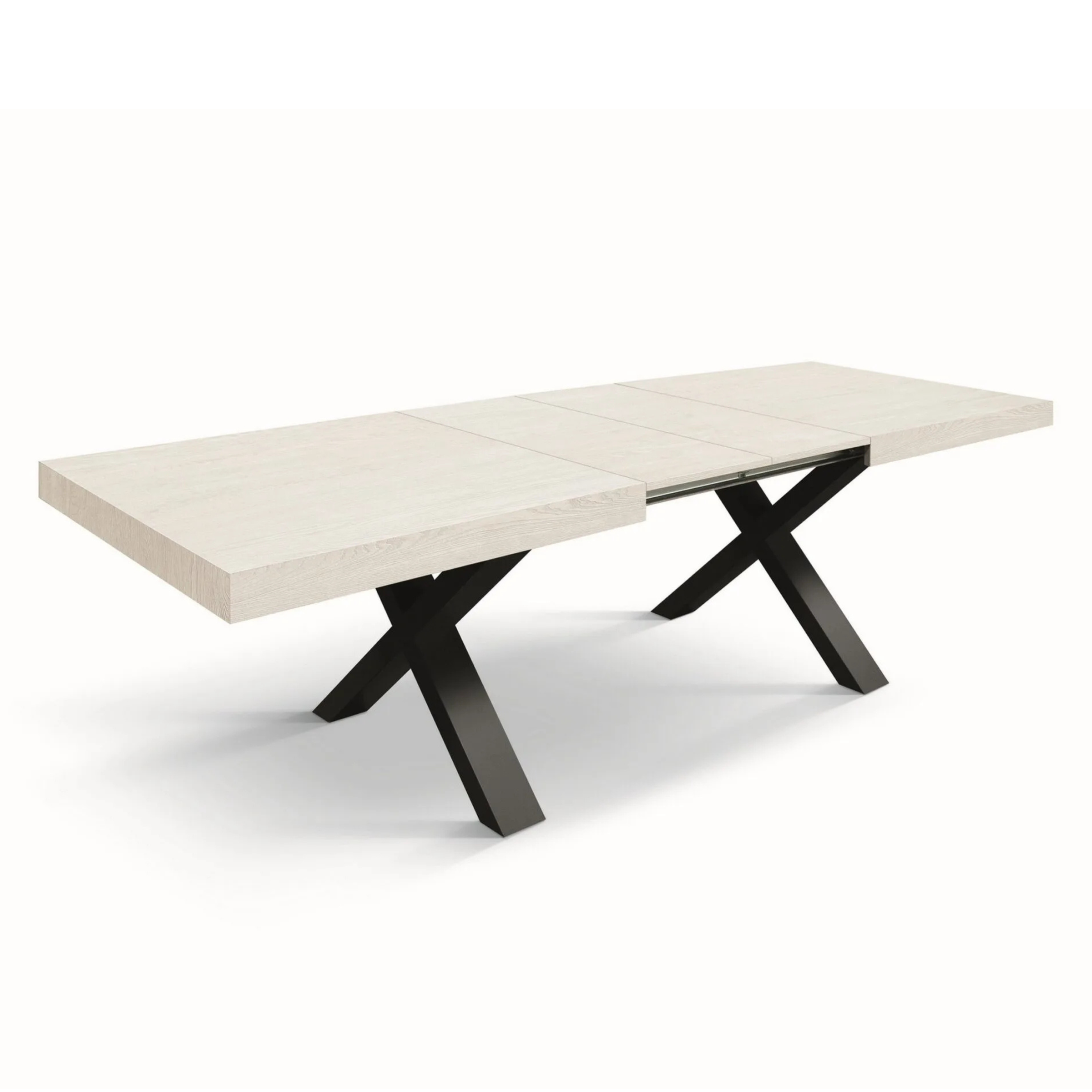 Sistema a doppia allunga: Utilizzando una o entrambe le allunghe centrali da 40 cm, il tavolo si estende progressivamente fino a 240 cm.