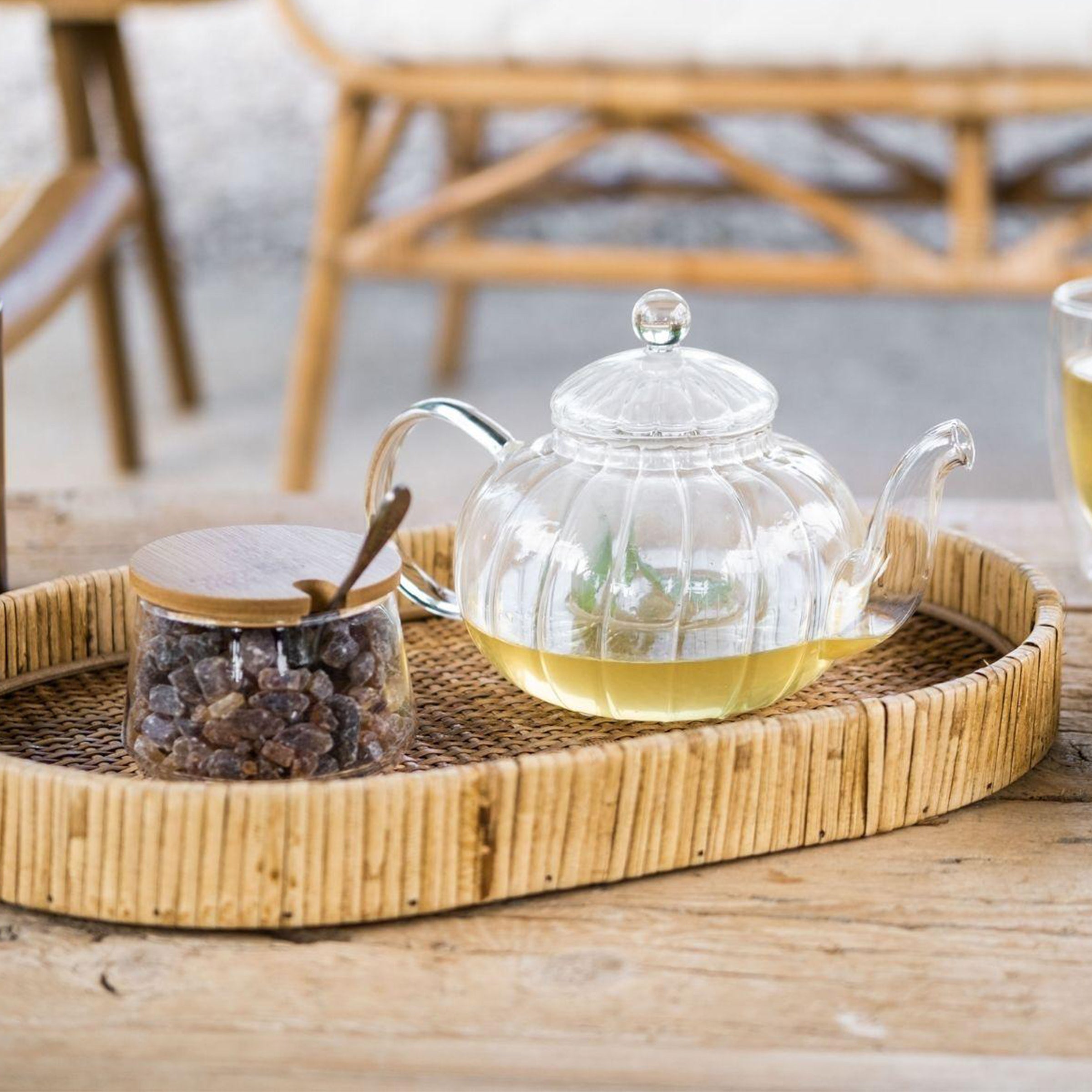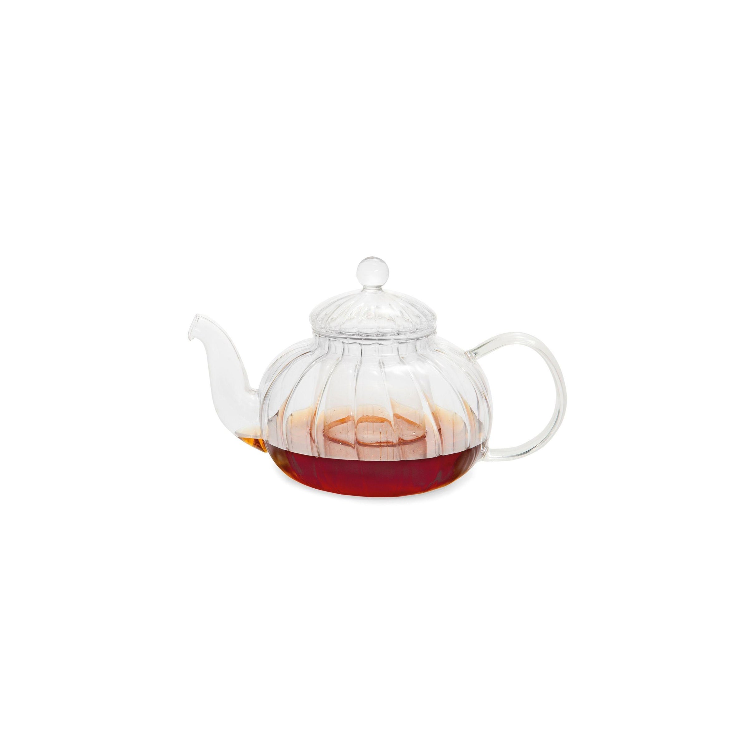 Teiera in vetro CHERRY con filtro, tappo e manico in vetro. Il filtro è perfettamente integrato nel design e i suoi piccoli fori filtrano anche le foglie di tè o infusi più piccoli. Dal design vintage, ideale da servire in tavola all'ora del tè.