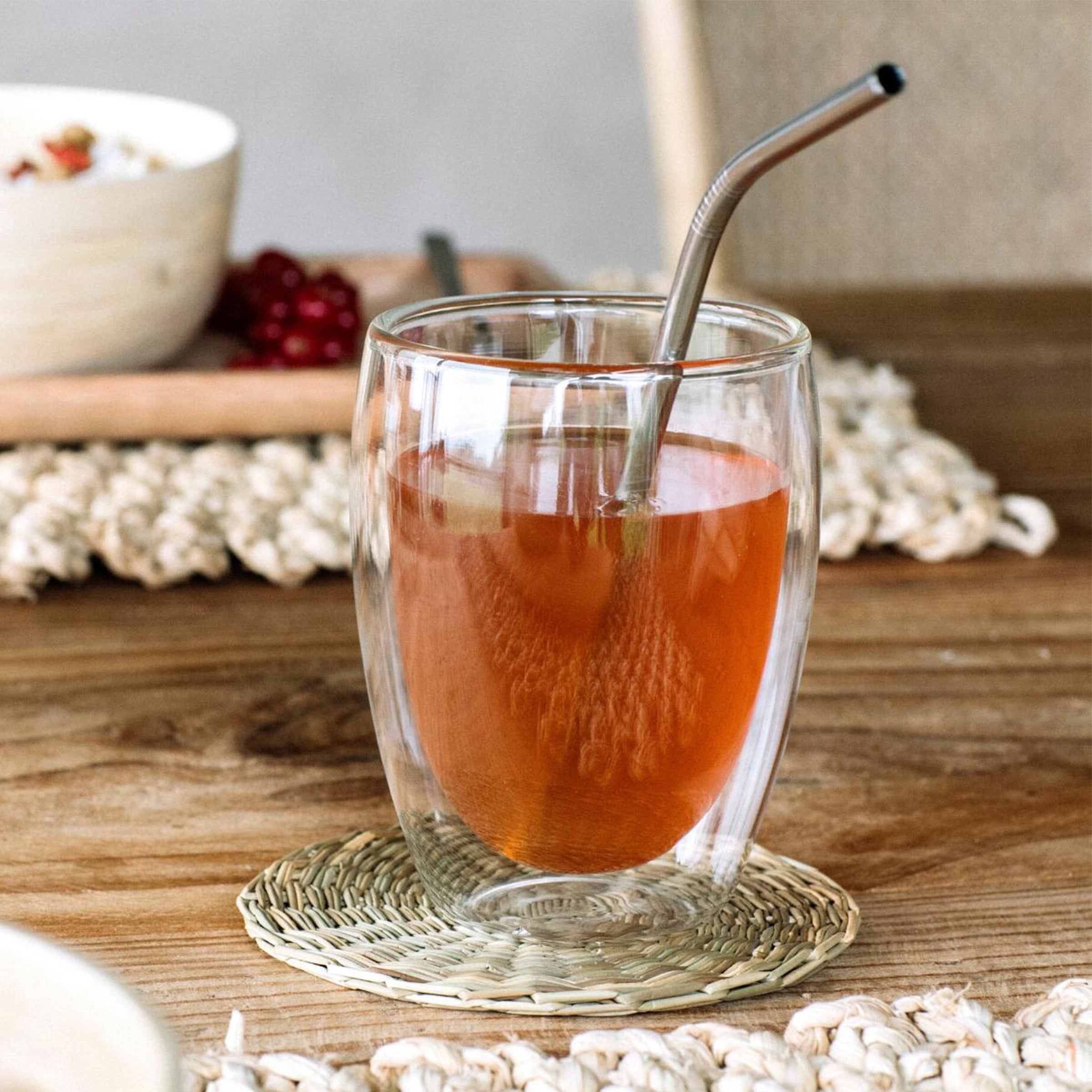 Il set di due bicchieri in vetro doppio STARS è ottimo per prendere un tè, una bibita o un frullato. La caratteristica principale è il doppio vetro che permette di mantenere la bevanda ad una temperatura calda più a lungo e di non scottarsi toccando il contenitore.