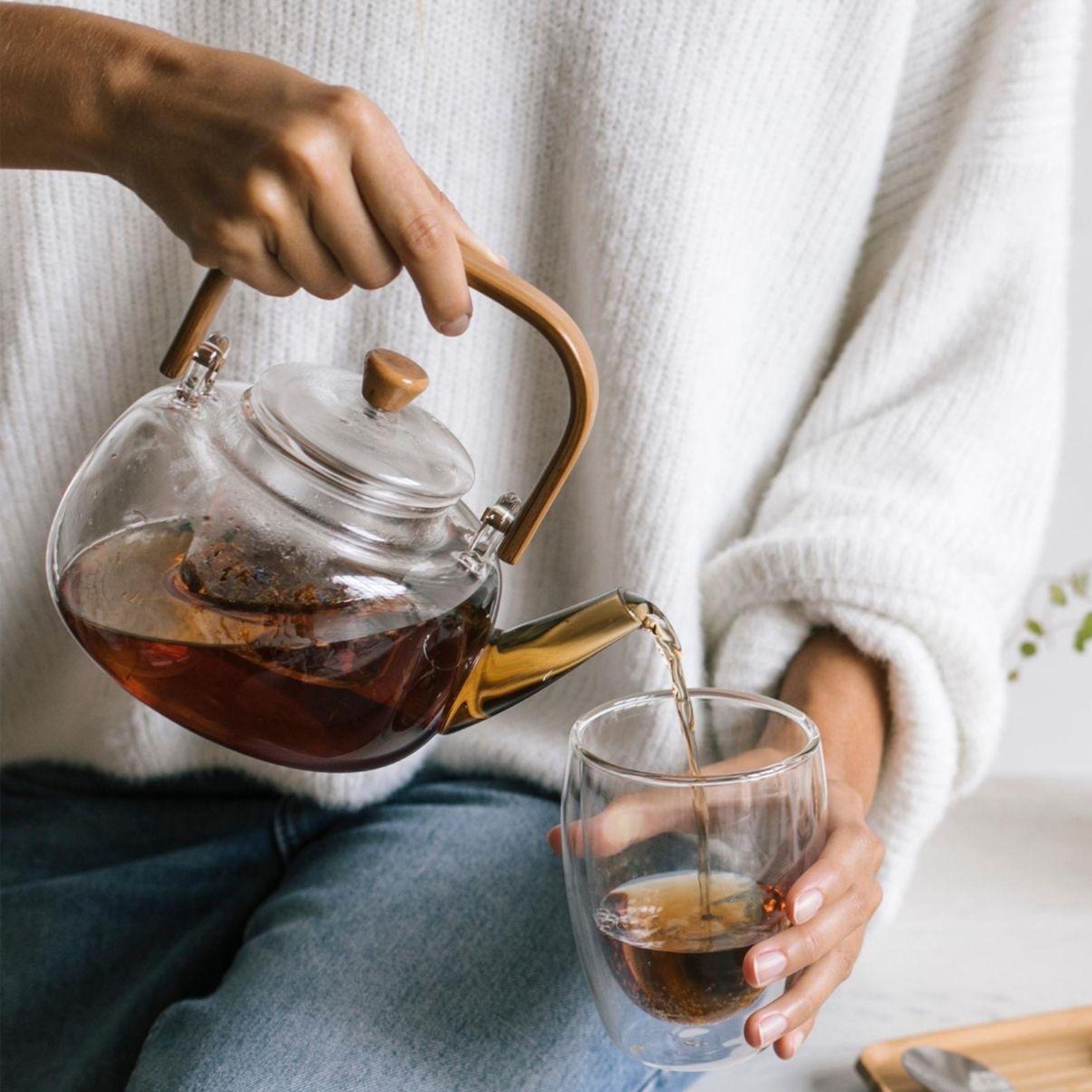 Preparare una tazza di tè è un rito: metti in infusione le foglie in acqua calda, osserva le diverse sfumature che si formano e goditi gli aromi che sprigiona. La teiera LEMON in vetro con filtro e manico in bambù incorpora un filtro in vetro per filtrare tè e infusi sfusi. Anche il coperchio è in vetro e ha un piccolo manico in legno di bambù. La sua capacità la rende ideale per prendere il tè in famiglia o servire il tè agli ospiti in un'atmosfera rilassata e rilassata.
