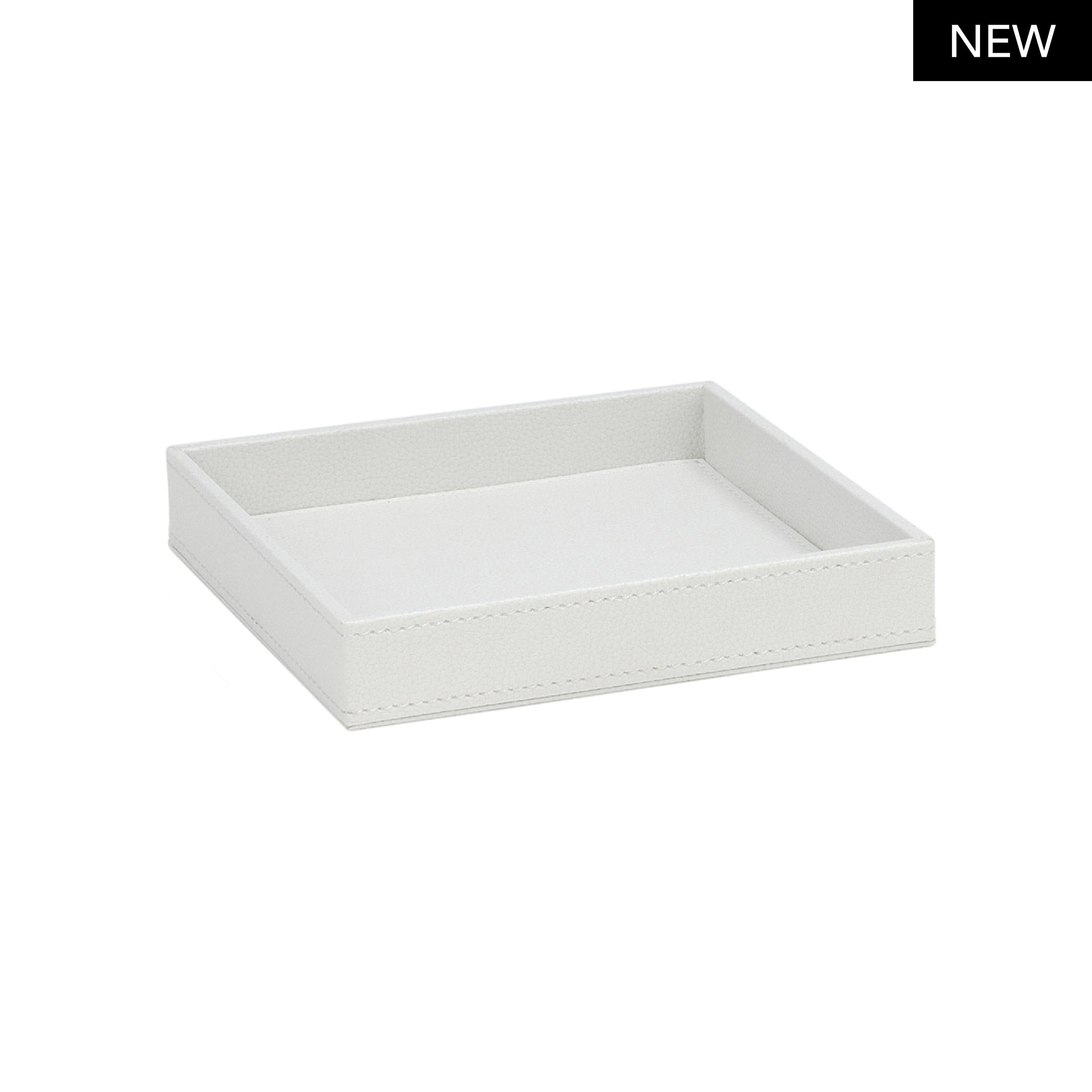 Vassoio quadrato realizzato in legno MDF e pelle sintetica. È un vassoio decorativo ideale per riporre chiavi o altri piccoli oggetti.