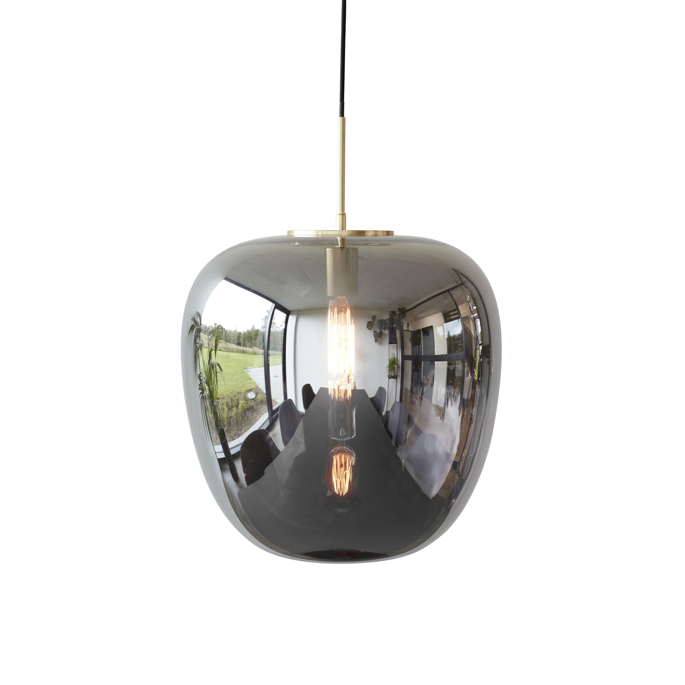 La lampada REFLECT ø 40 è è realizzata in ottone e vetro riflettente, materiali che gli permettono di fondersi con l’ambiente circostante facendo sembrare ogni stanza leggermente più spaziosa.