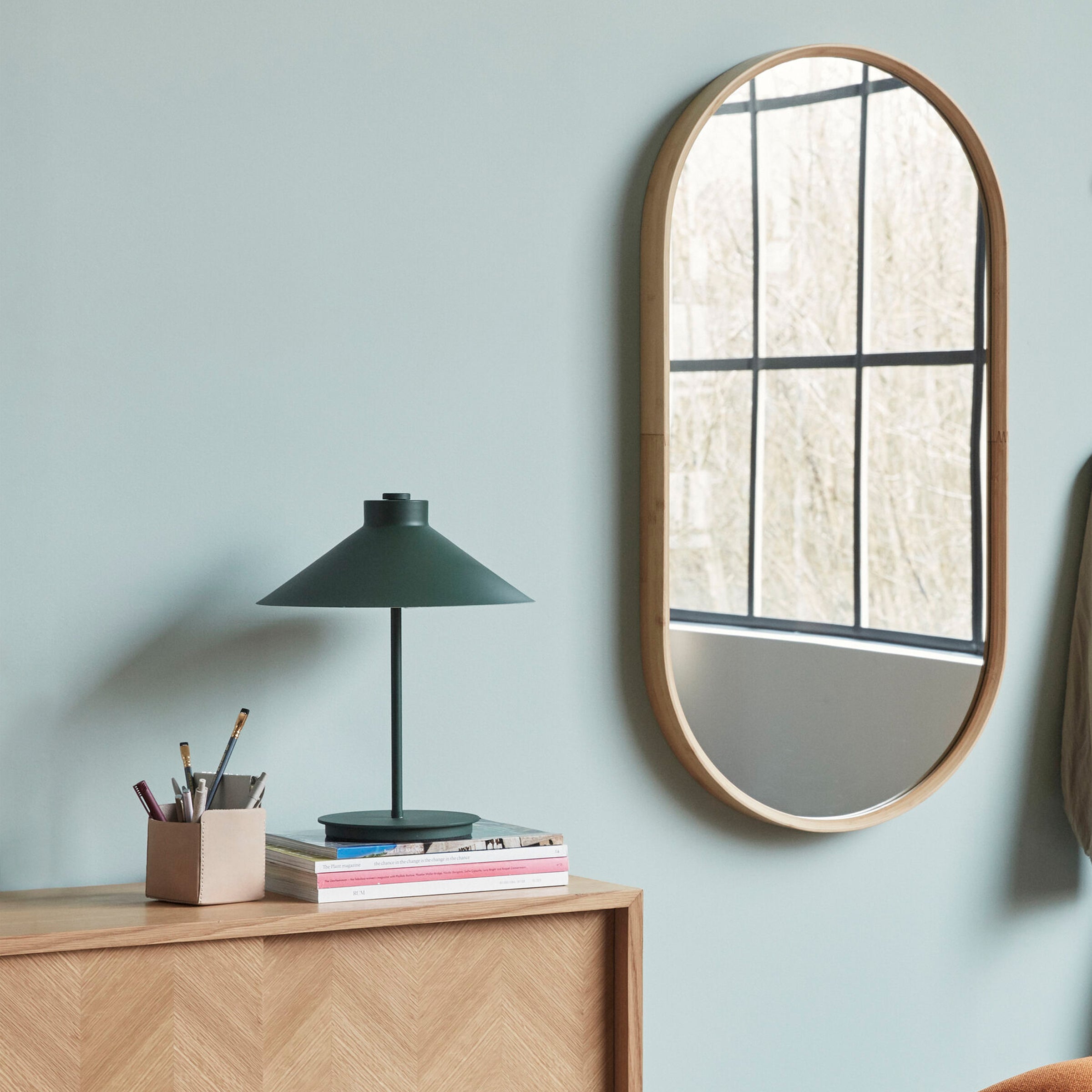 La lampada da tavolo SHAPE è realizzata in metallo verde e proprio il suo colore insieme alla sua forma la rendono un complemento d’arredo senza tempo.