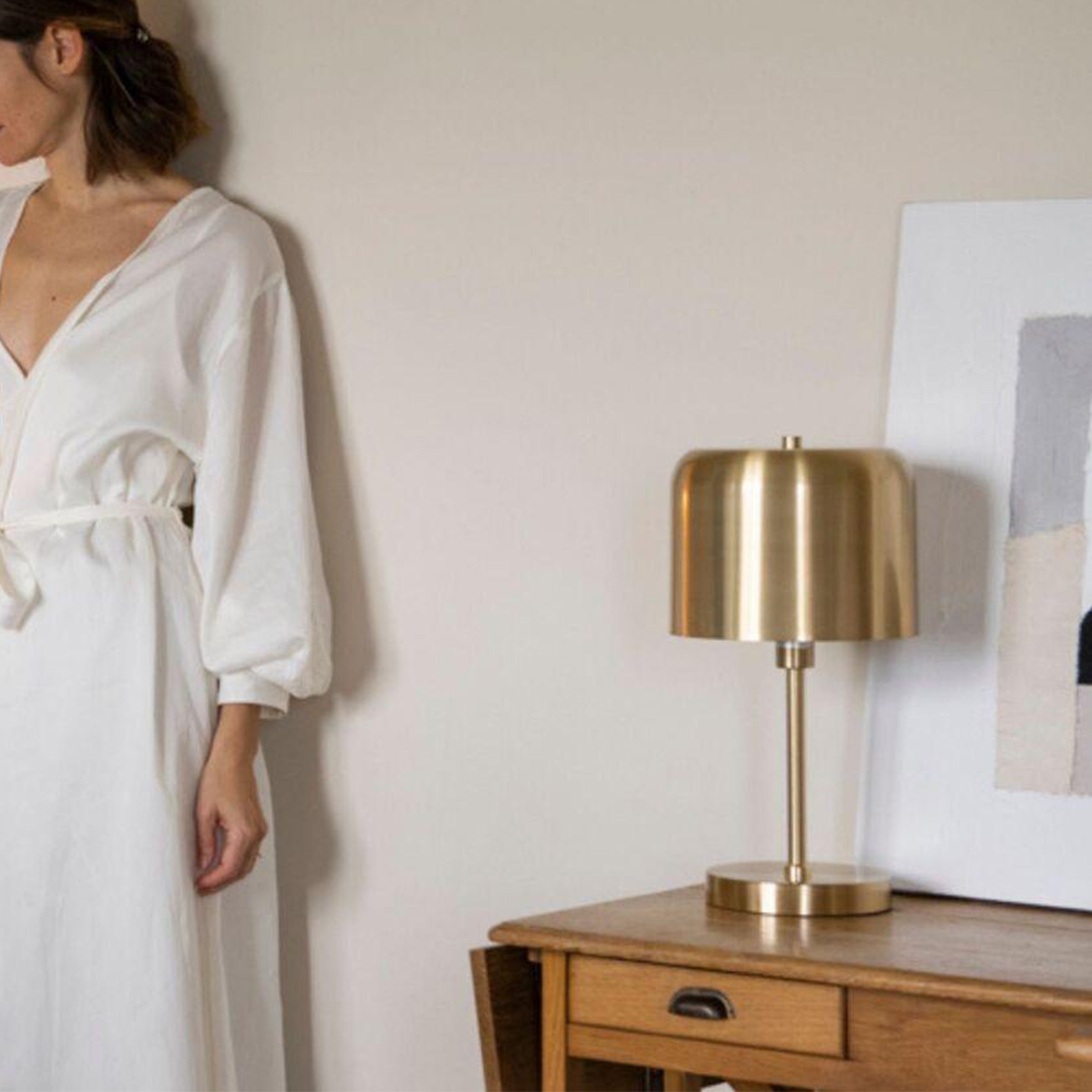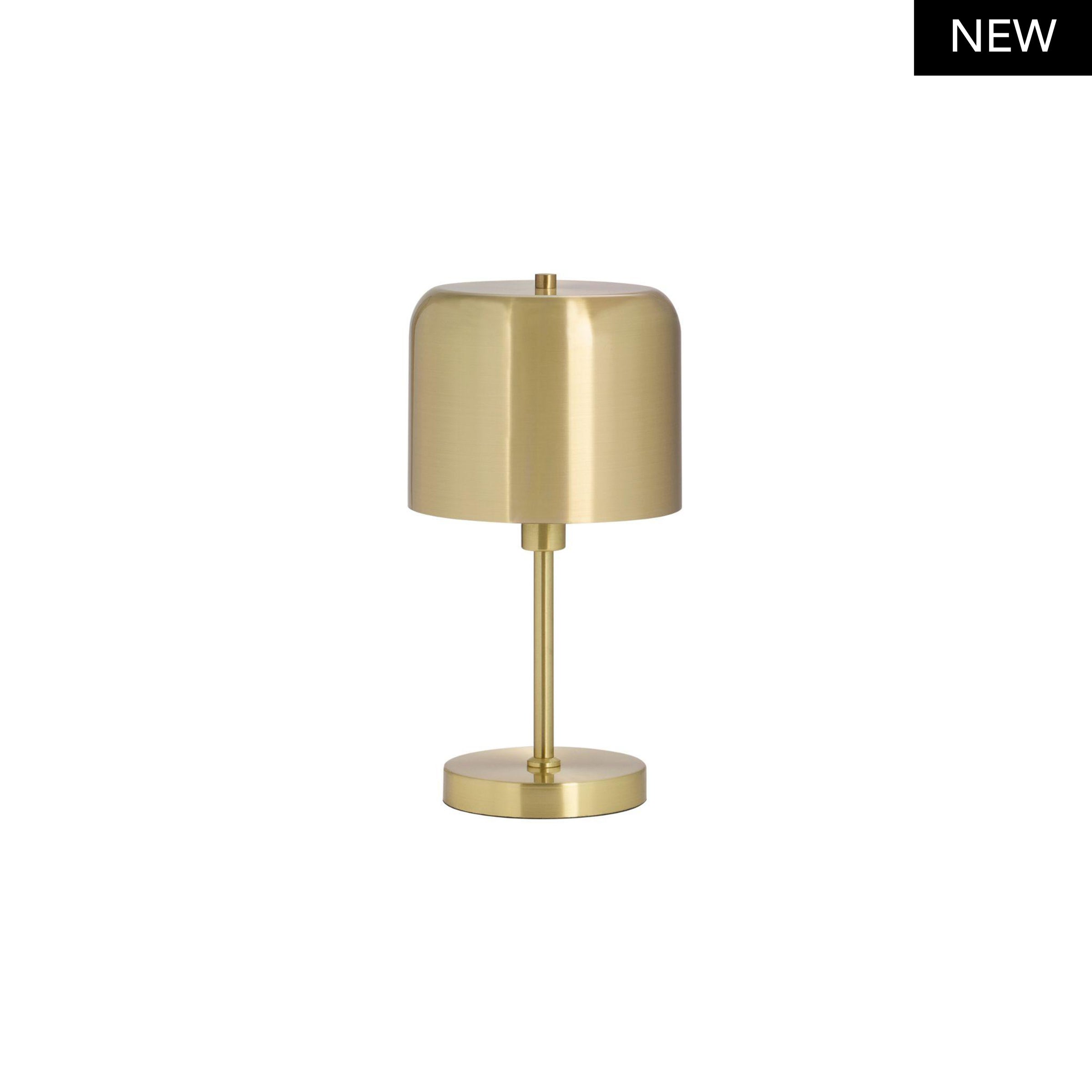 Le lampade da tavolo Ambient offrono una luce più diffusa e morbida, vengono solitamente posizionate sopra mobili e tavolini e utilizzate come punto luce secondario e per creare atmosfera. La lampada da tavolo ZOWIE è in metallo color oro con finitura placcata in ottone lucido. È una lampada in stile vintage ideale per aggiungere eleganza alla stanza.