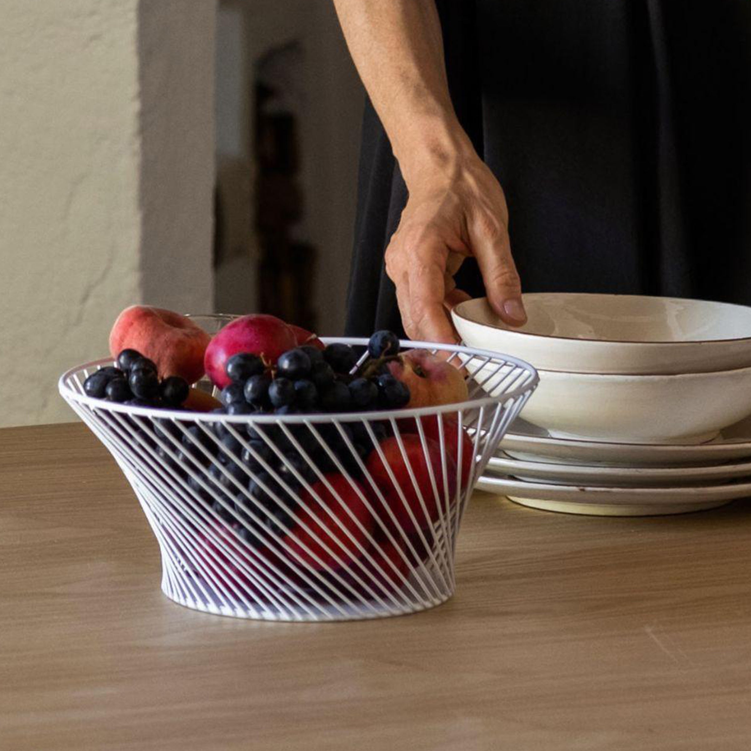 Portafrutta in rete metallica bianca