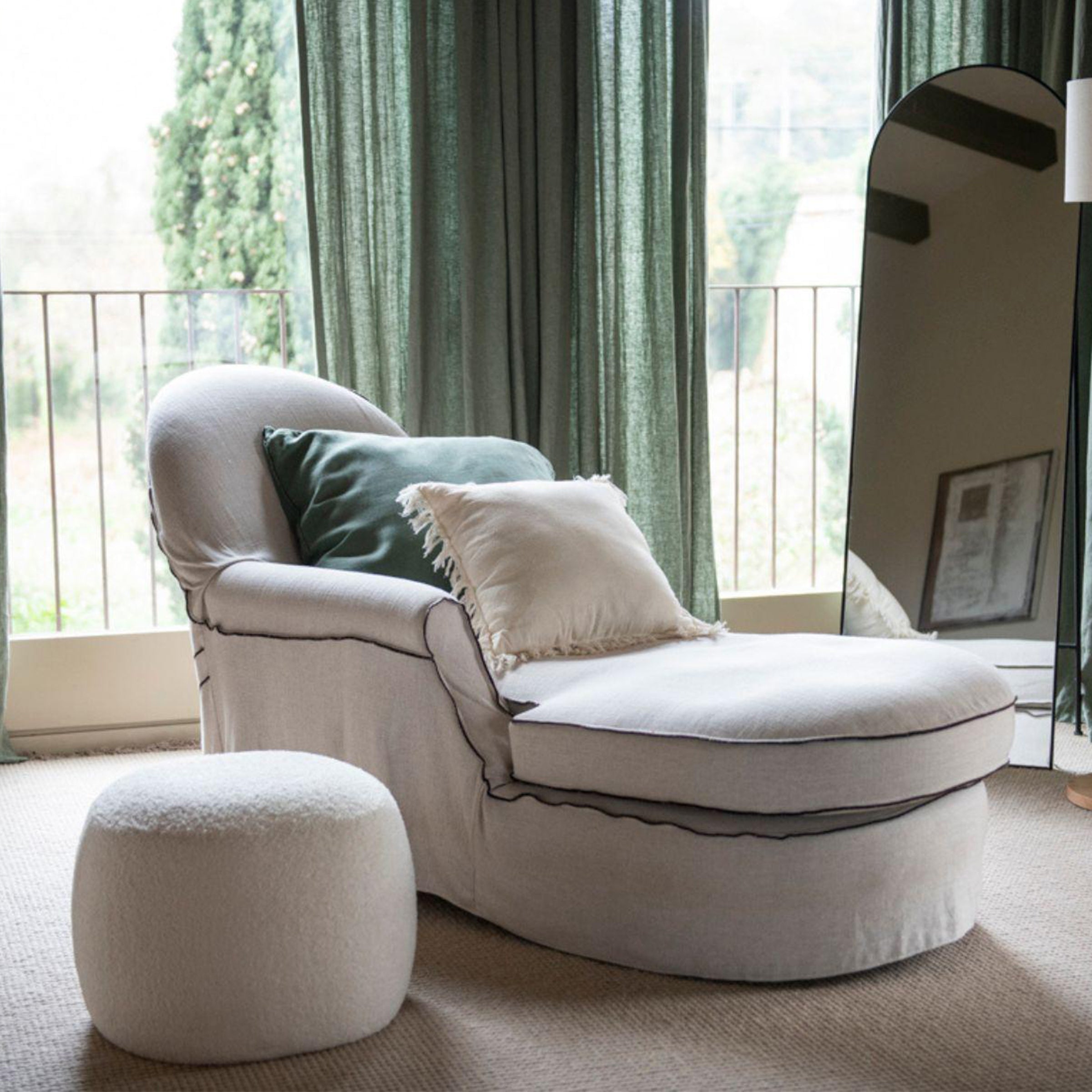 Il pouf CALISTO rivestito in tessuto shearling bianco è un complemento d'arredo versatile che può essere utilizzato come seduta per una toeletta, per rilassarsi, o come poggiapiedi da posizionare davanti a una poltrona o un divano.