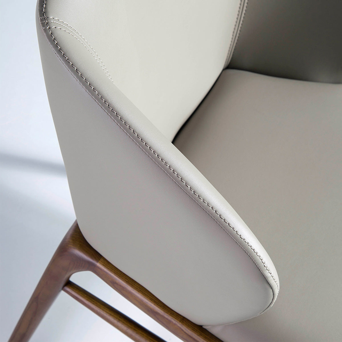 Sedia da pranzo rivestita in similpelle di visone con sedile e schienale in schiuma di poliuretano da 25 kg / m3. La sua struttura in legno di frassino tinto noce, fornirà quel tocco di calore ed eleganza che cerchi nella tua casa. Un intero pezzo di design che non vorrai perderti nella tua sala da pranzo.