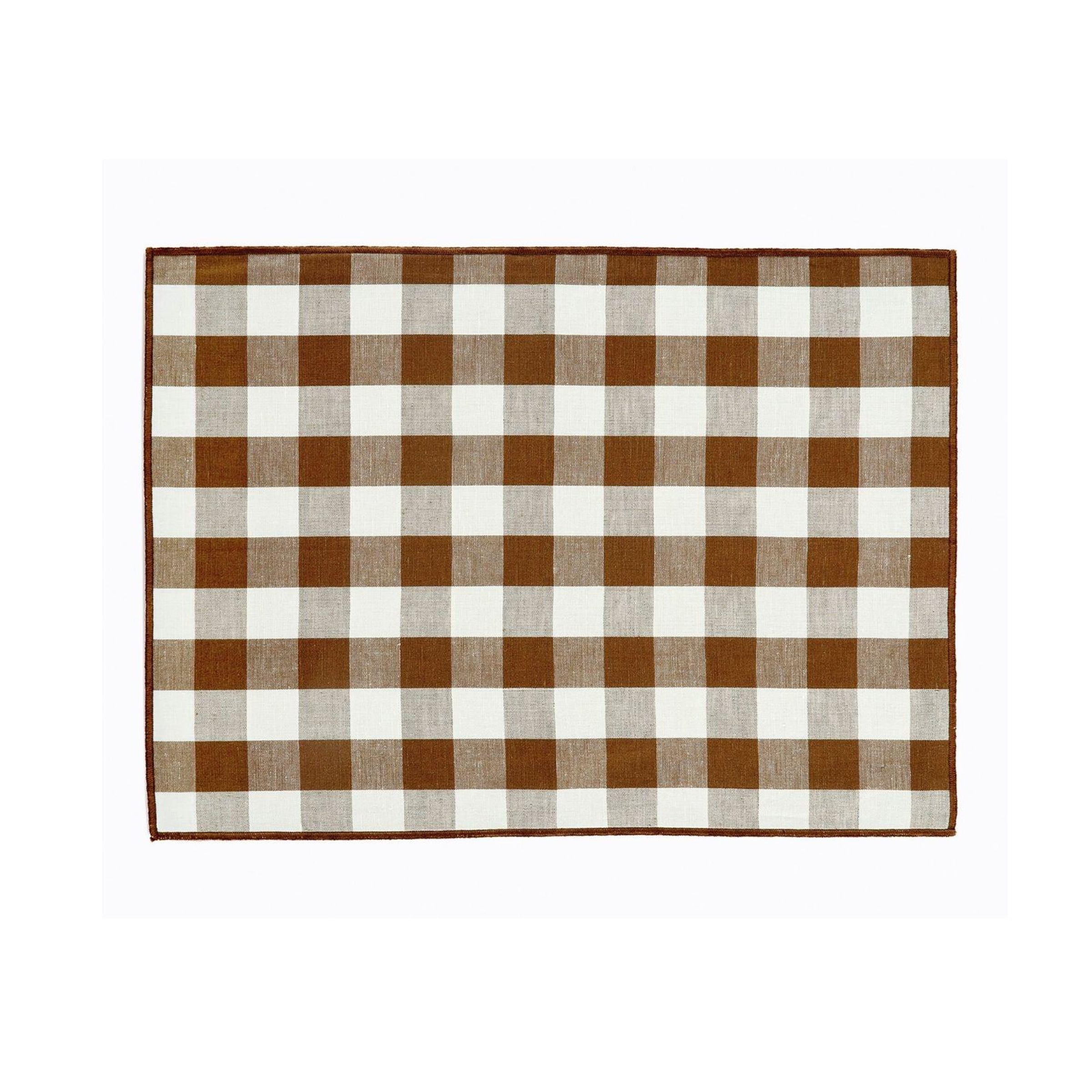 Set di due tovagliette a quadretti marroni. Realizzato in tessuto di lino e cotone, stile classico e rustico. Un accessorio da tavola ideale per i pasti in famiglia durante la settimana.