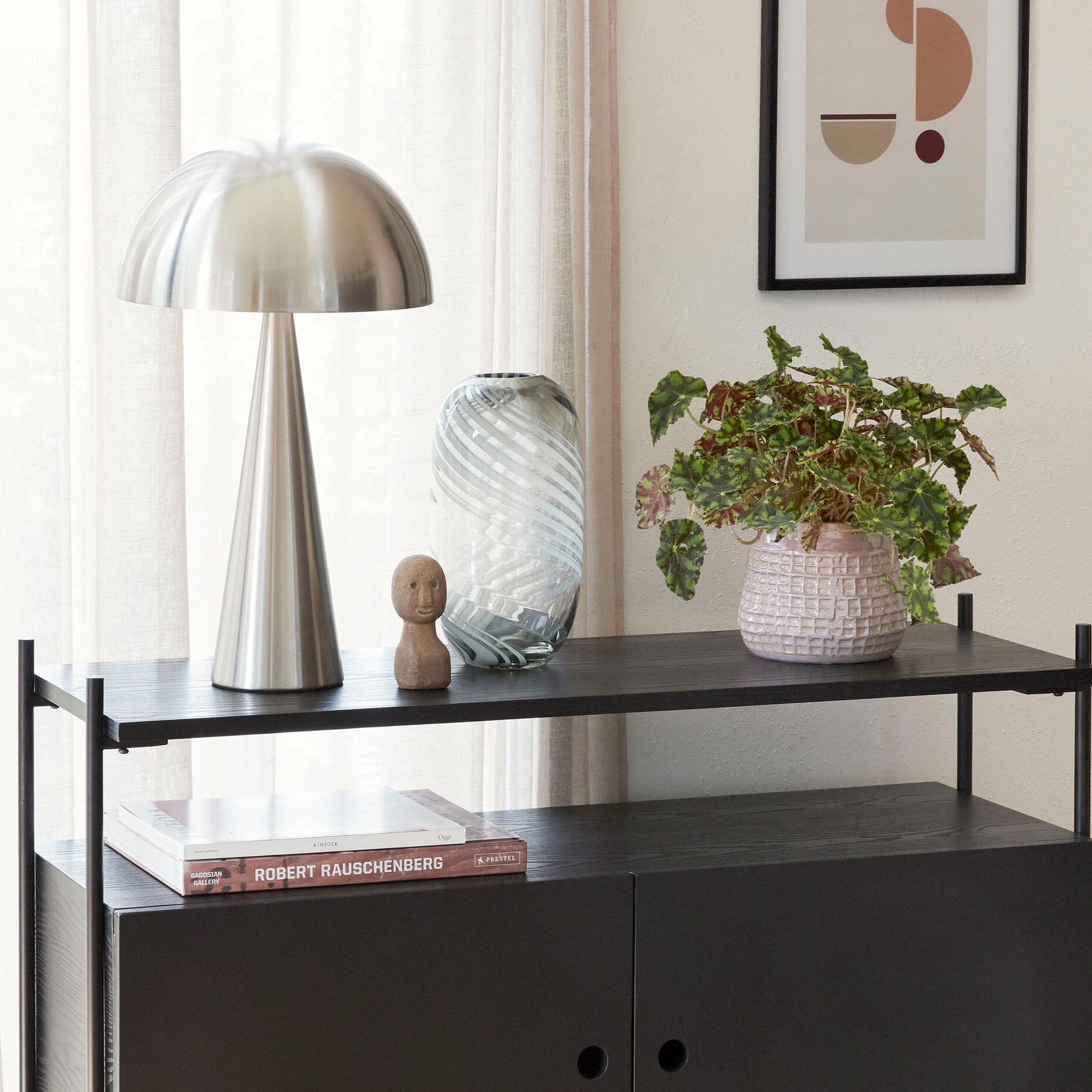 Il vaso SWIRL è realizzato in vetro e con i suoi dettagli nei colori grigio e bianco, aggiunge un tocco giocoso alla tua stanza.