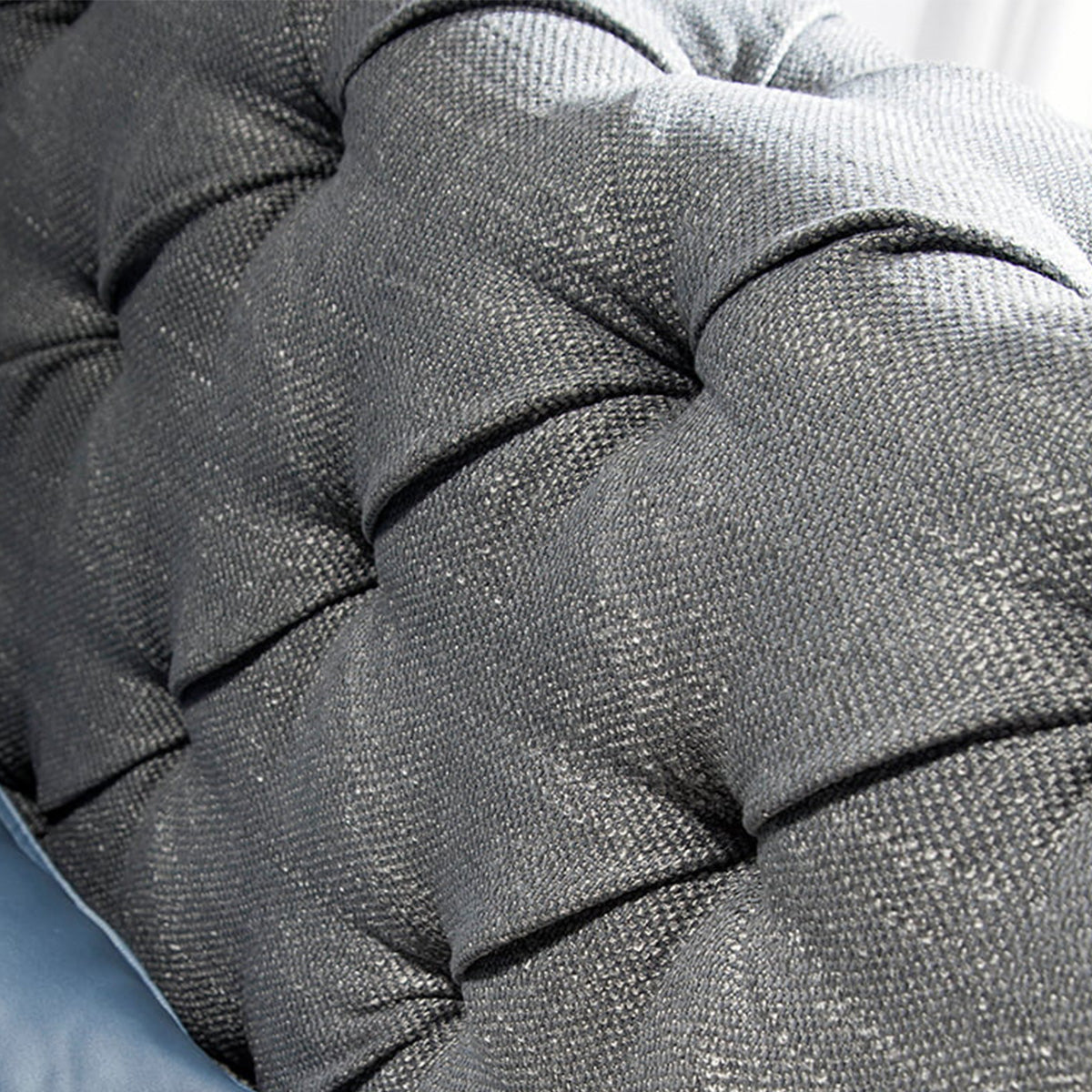 Letto matrimoniale moderno con struttura interna in legno massiccio di pino naturale rivestito in tessuto grigio, dal design originale con effetto capitonné e dallo stile elegante con cui creerete uno spazio accogliente e personale, senza tralasciare il massimo comfort, grazie all'imbottitura in poliuretano espanso da 25 kg/m3. Include una comoda base multi-letto in legno di pino. Include una comoda base multi-letto in legno di pino, perfetta per il vostro riposo!