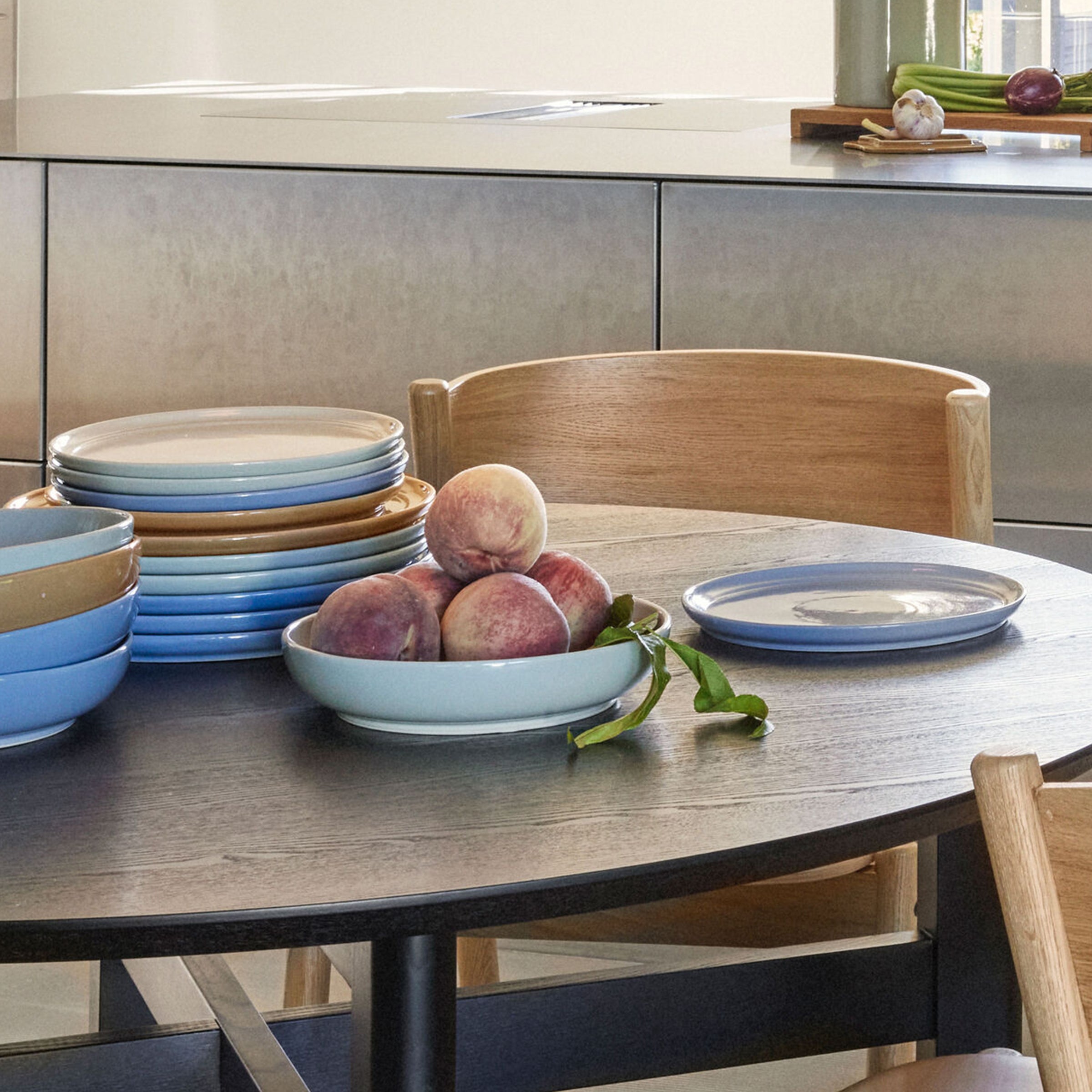 Il piatto piano AMARE in ceramica lucida. Di ispirazione retrò è il piatto perfetto per servire i vostri pasti.