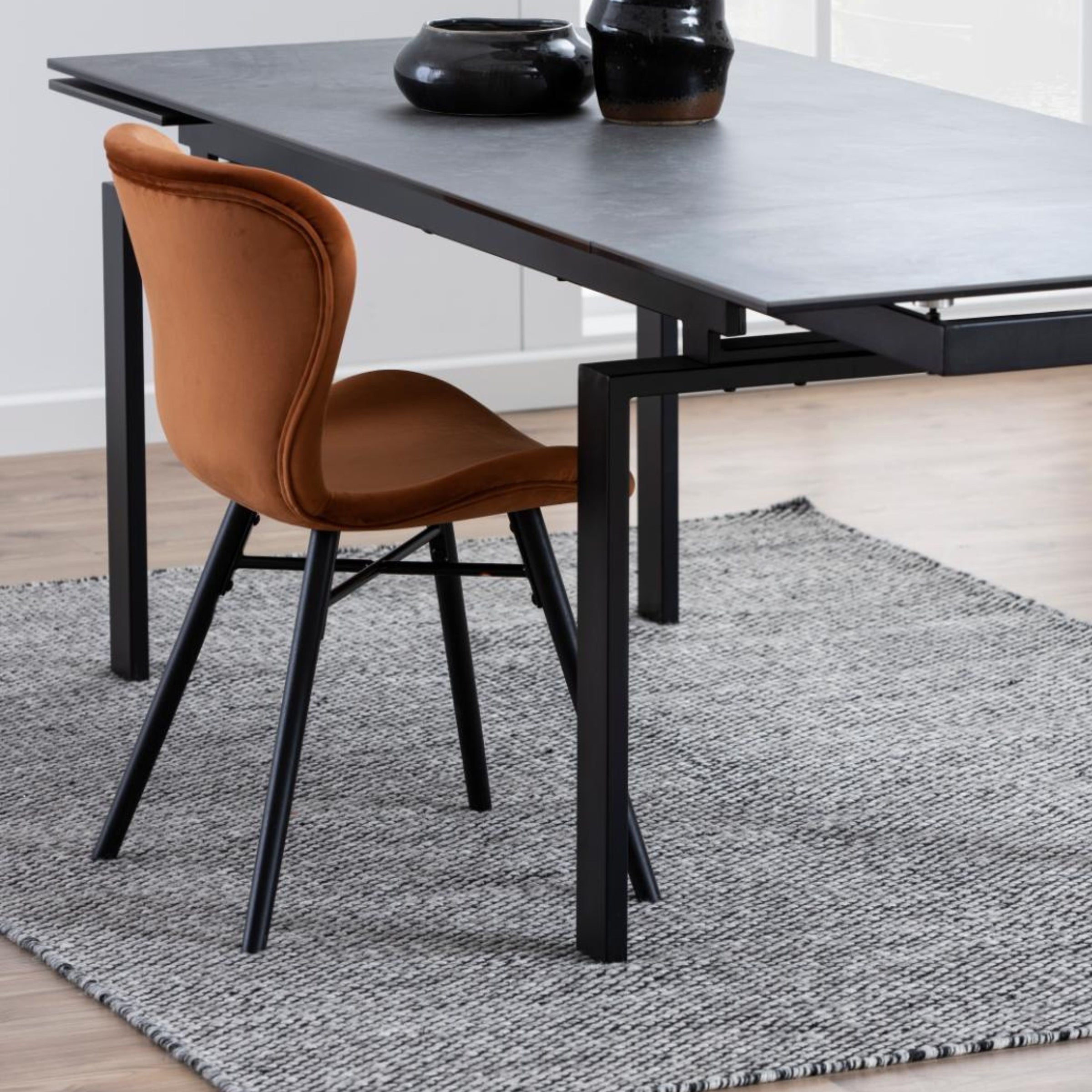 La seduta dalla forma organica in velluto avvolge il corpo, offrendo un supporto solido e confortevole grazie allo schienale curvo. Che tu stia gustando una cena veloce o trascorrendo ore a chiacchierare con amici e famiglia, questa sedia garantisce il massimo del relax.