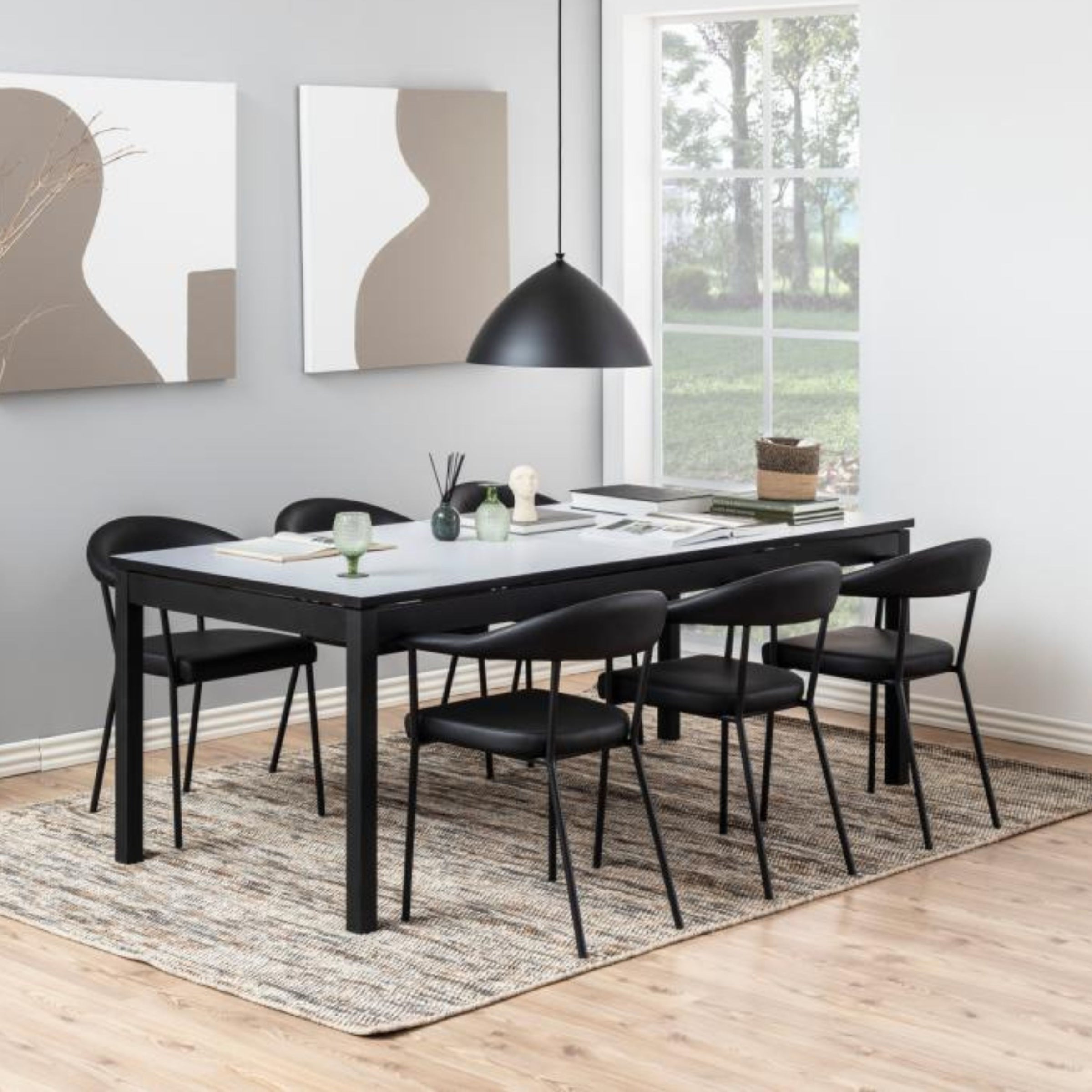 Aggiungi un tocco di eleganza contemporanea alla tua sala da pranzo con la sedia Carver. Il suo design minimalista è pensato per chi ama le linee pulite e la sofisticatezza. Con una struttura sottile in metallo nero, questa sedia offre un'estetica leggera e ariosa che si integra perfettamente in qualsiasi ambiente moderno.