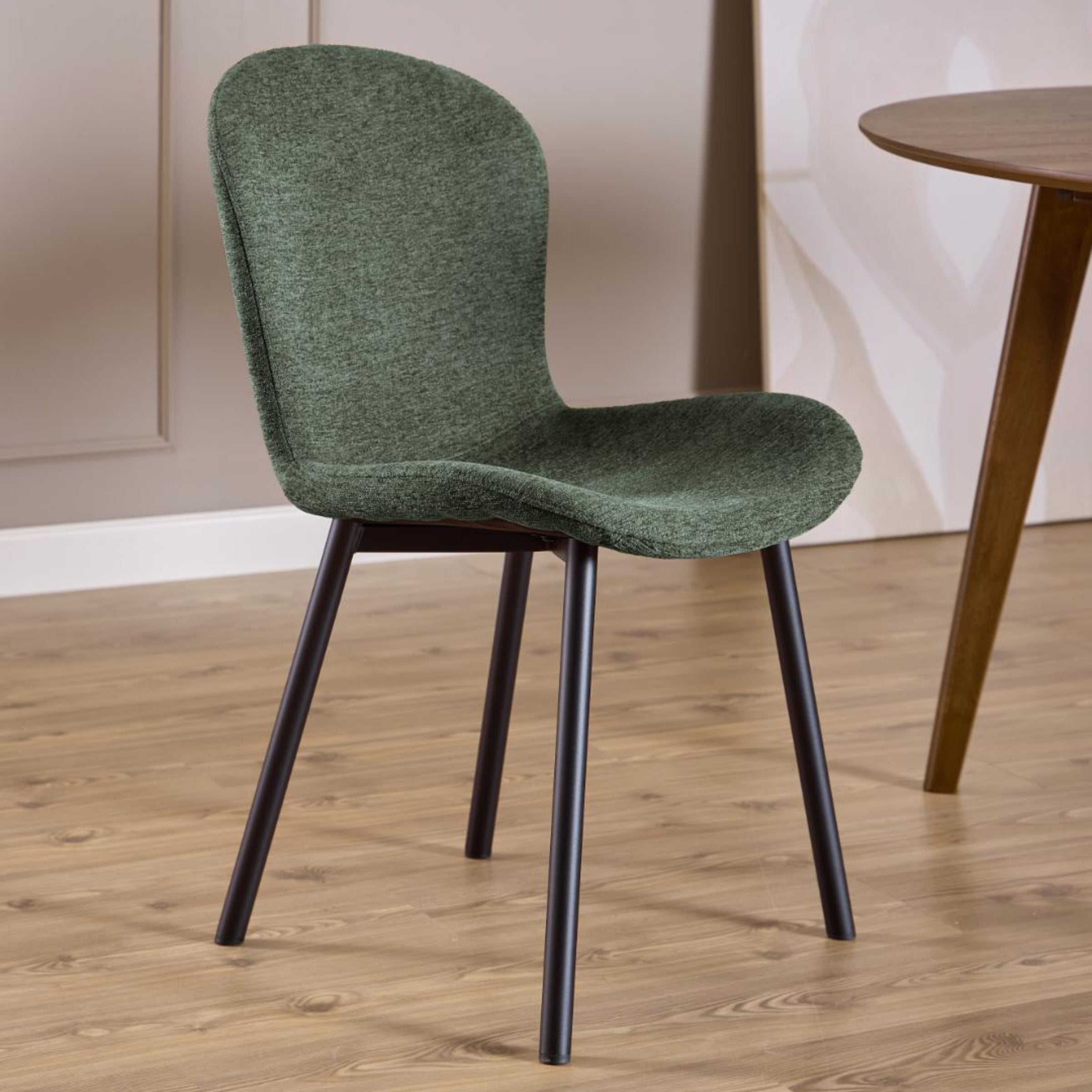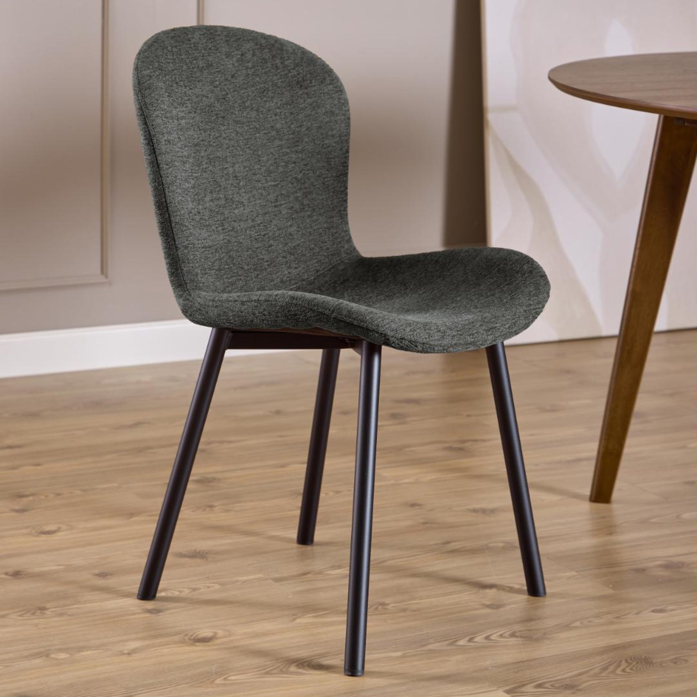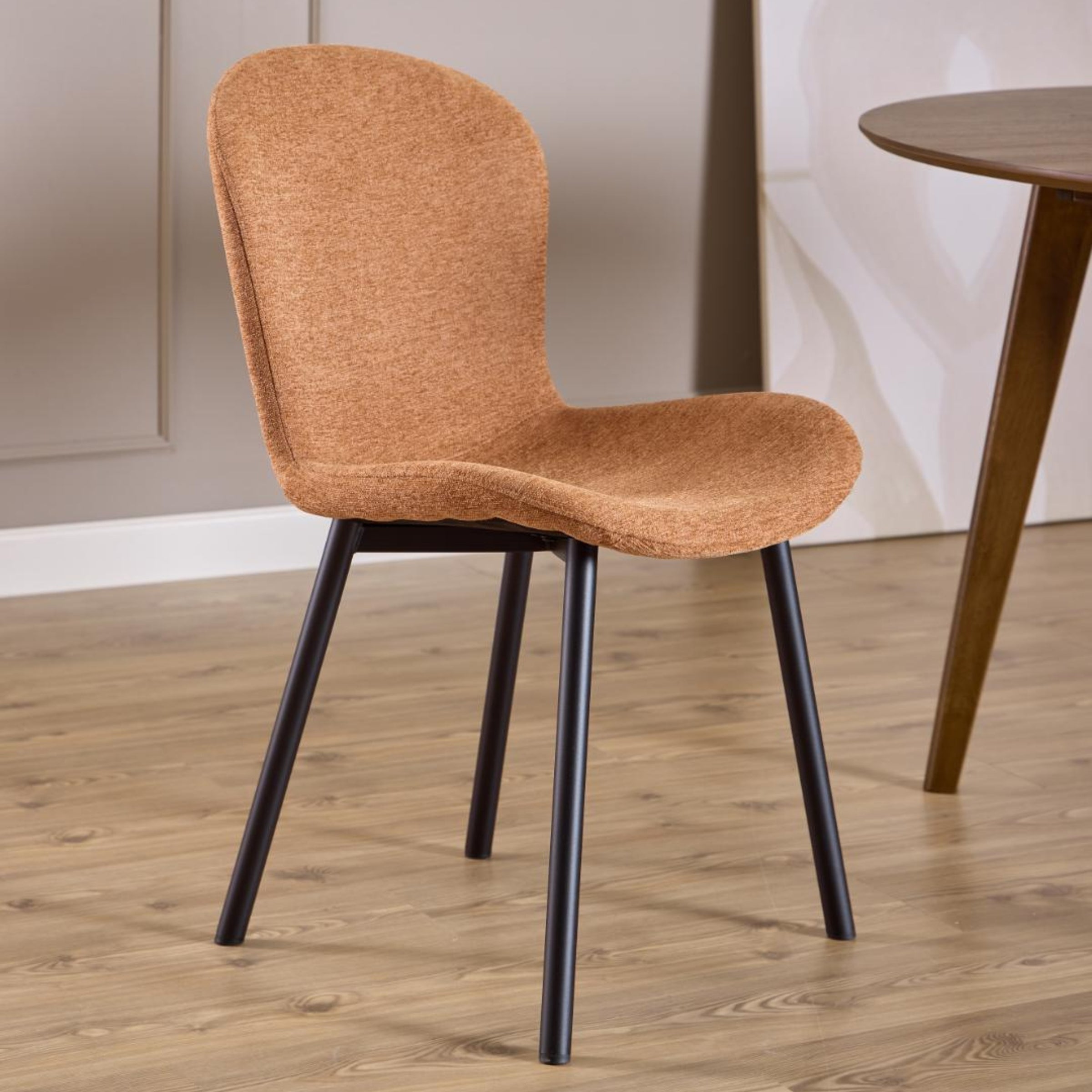 Eleganza, morbidezza e stile contemporaneo si fondono in questa sedia da pranzo, pensata per diventare il punto focale del tuo ambiente. Le sue curve sinuose e le robuste gambe in acciaio nero creano un contrasto visivo accattivante, aggiungendo un tocco di classe al tuo spazio.