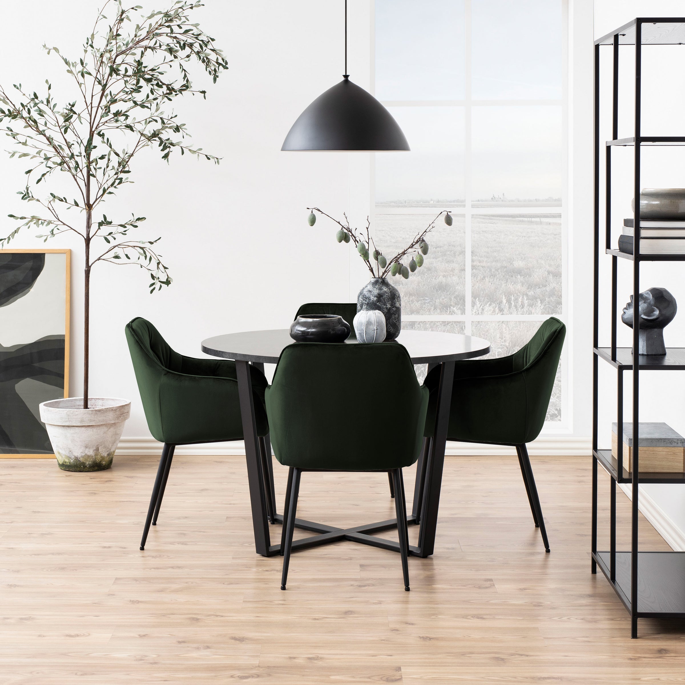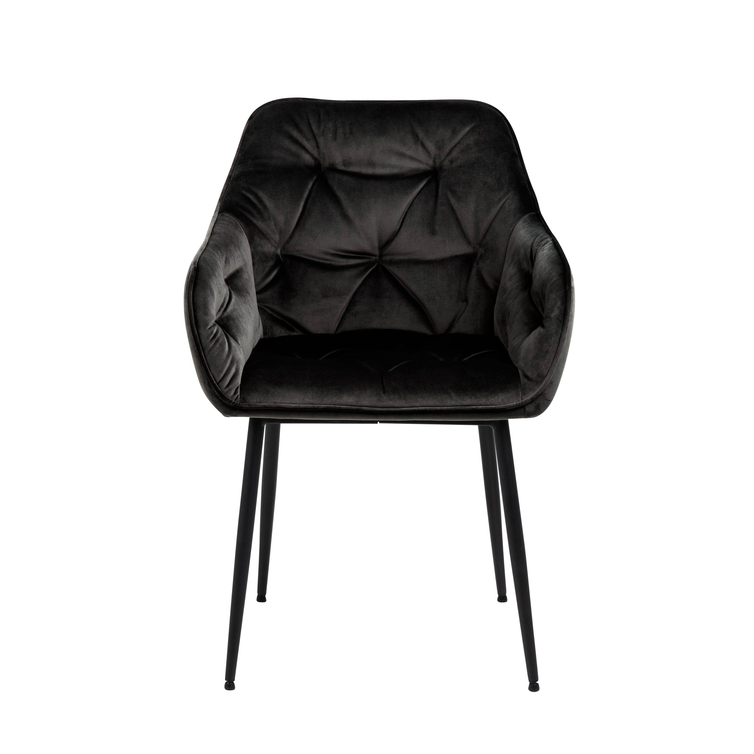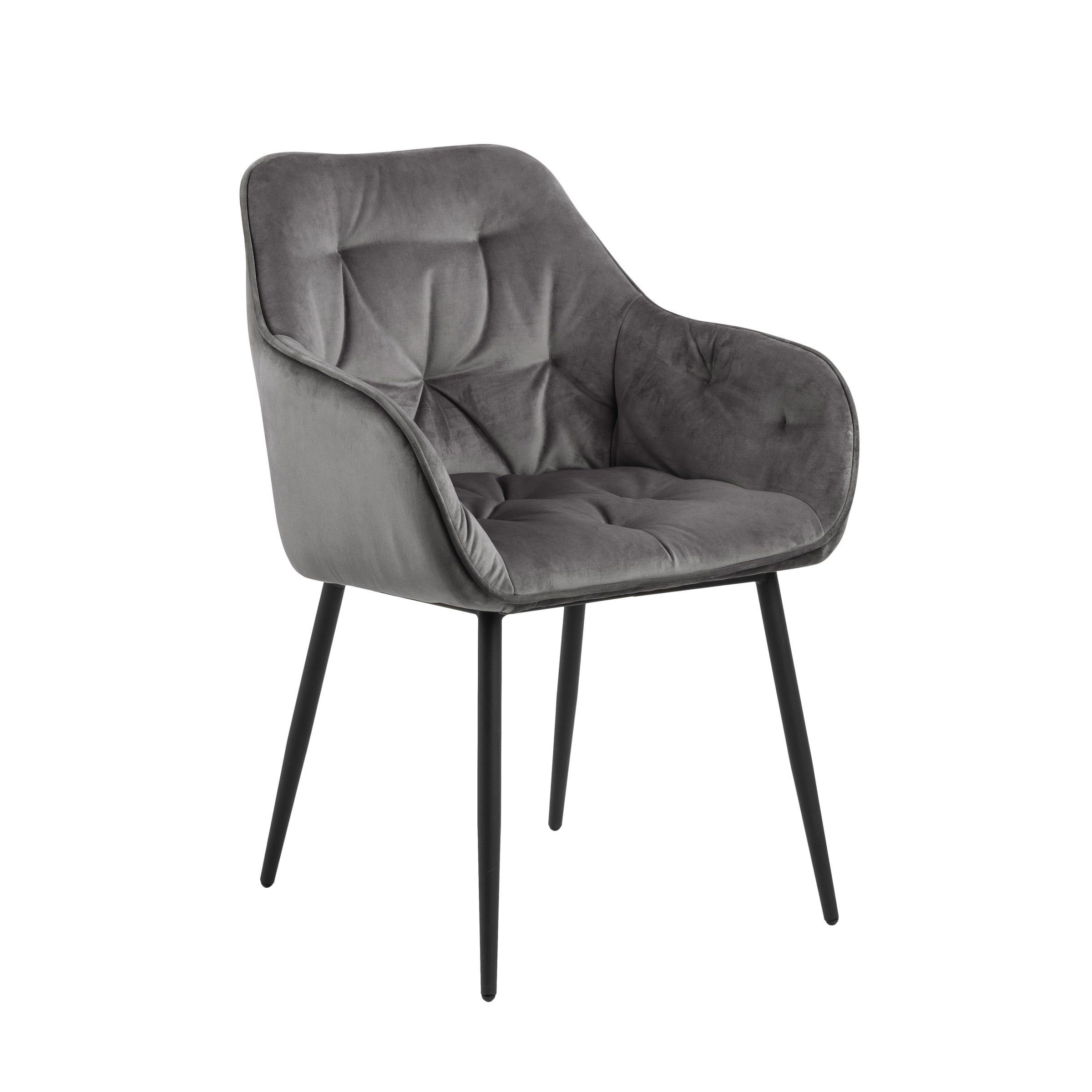 Grazie alla sua seduta imbottita, è l'alleata perfetta per le lunghe cene in compagnia, offrendo un supporto eccezionale per ore. La sedia è sostenuta da 4 gambe con finitura verniciata a polvere nera, che garantiscono stabilità e un contrasto elegante con il velluto.