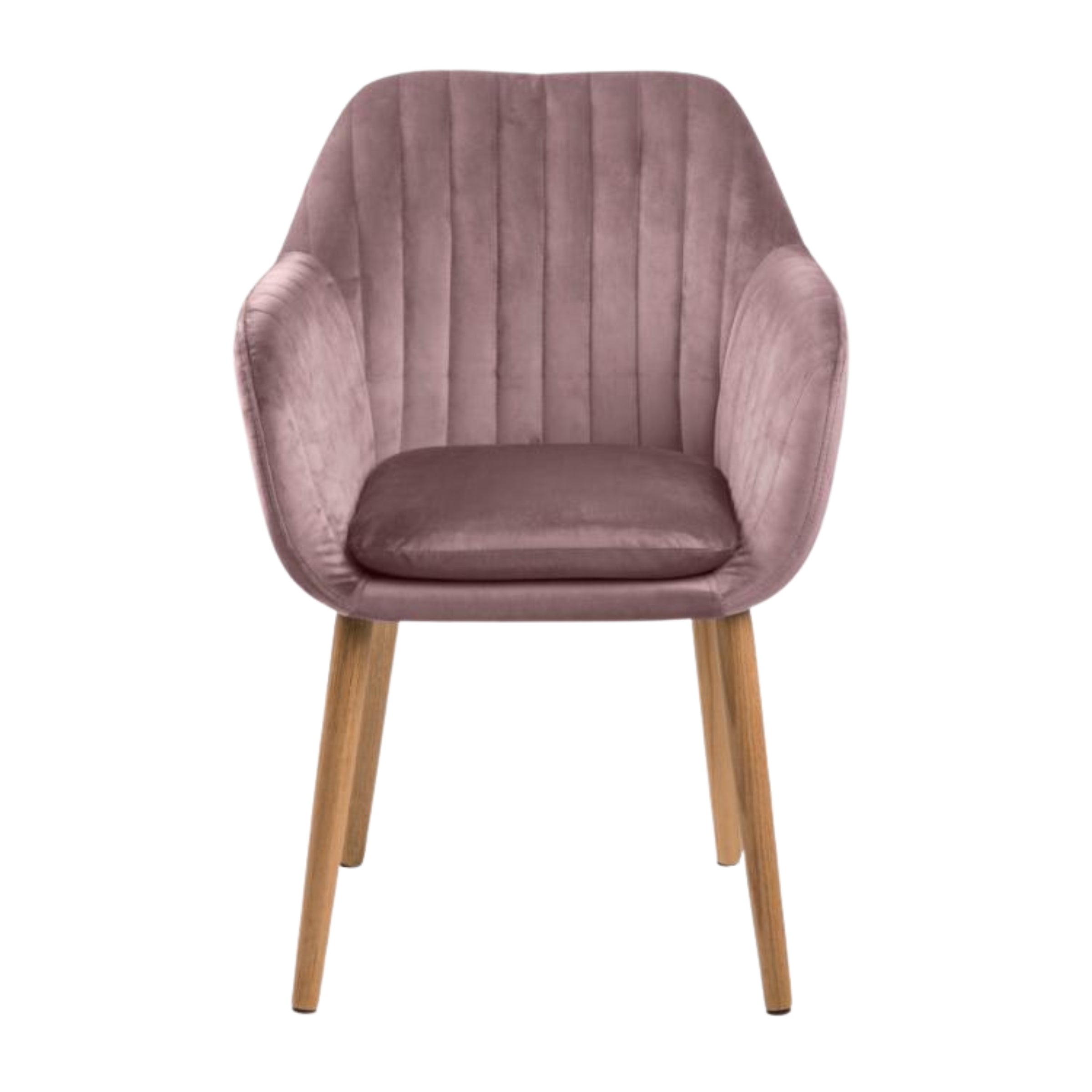 La sedia poggia su gambe affusolate in rovere oliato, che creano un contrasto naturale con il velluto rosa, aggiungendo un tocco di calore e raffinatezza. Che tu stia organizzando una cena formale o un pasto in famiglia, questa sedia ti farà cenare con stile e comodità.
