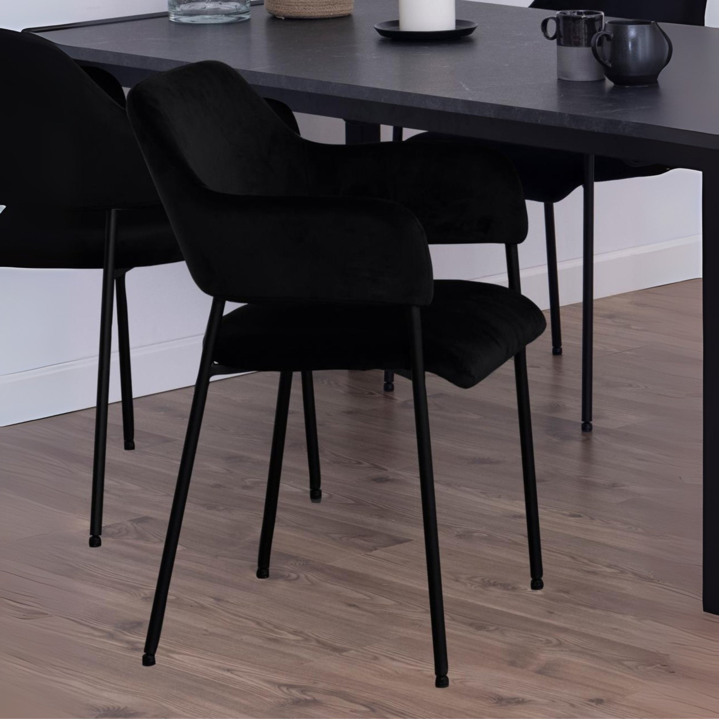 La base in metallo nero verniciato a polvere, robusta e dallo stile industriale, crea un contrasto affascinante con il velluto morbido, rendendo questa sedia un pezzo d'arredamento che cattura l'attenzione. Elegante, comoda e dal fascino senza tempo, è l'aggiunta perfetta per chi cerca un mix di praticità e bellezza.