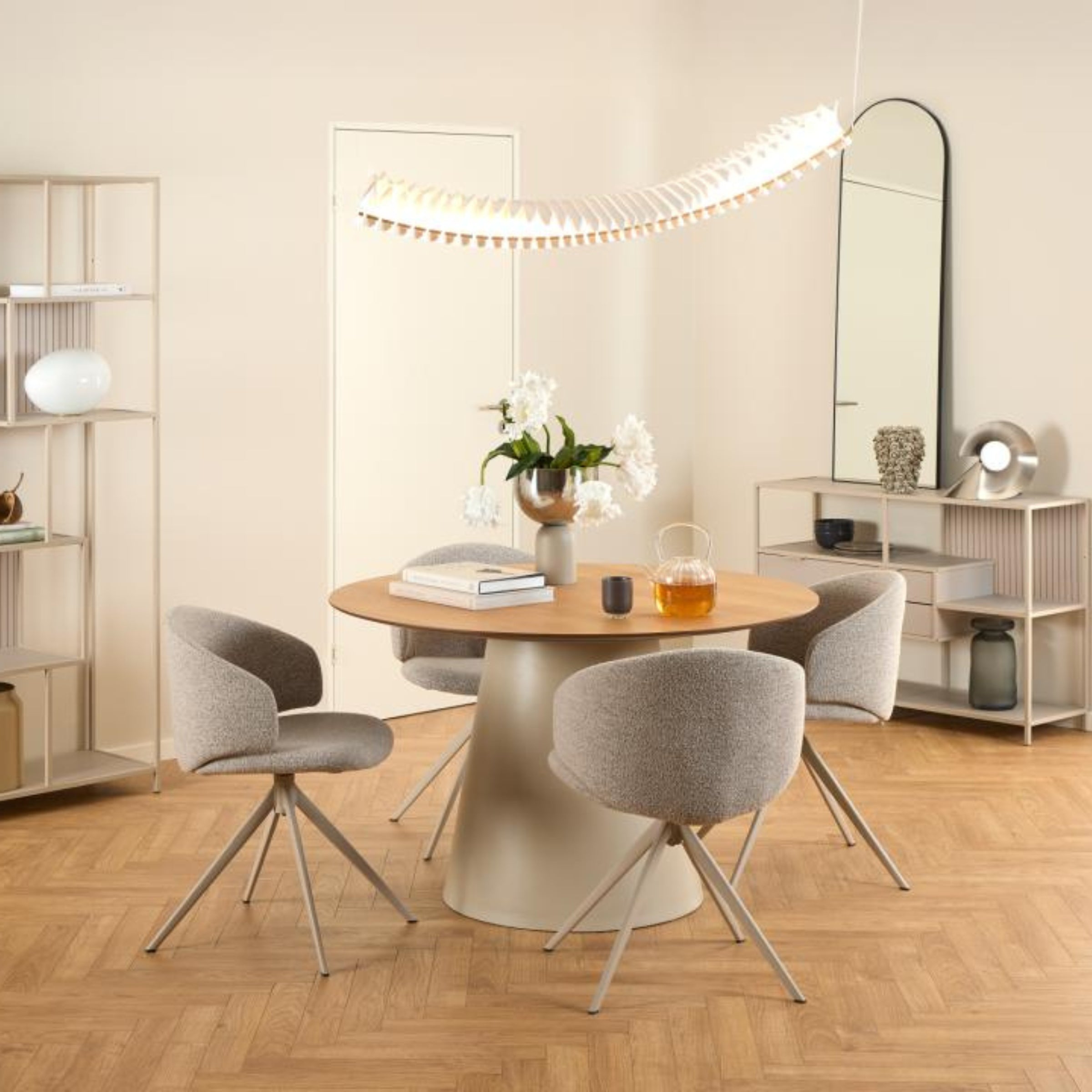 Realizzata con un solido basamento in acciaio verniciato a polvere, questa sedia garantisce la massima stabilità senza sacrificare lo stile. Se cerchi un pezzo d'arredo che unisca comfort, design e praticità, la nostra sedia da pranzo girevole è la scelta ideale.