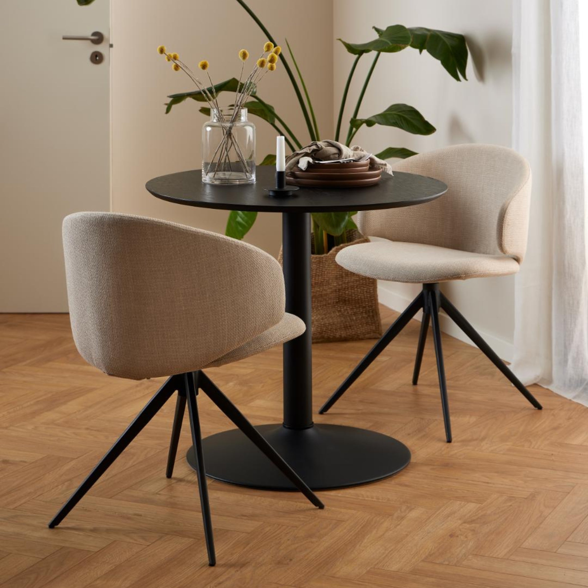 Eleganza senza tempo e funzionalità moderna si incontrano in questa sedia da pranzo, l'aggiunta perfetta per la tua casa. Il design minimalista, con una silhouette snella e una seduta rotonda e avvolgente, porta una ventata di freschezza a ogni tavolo.