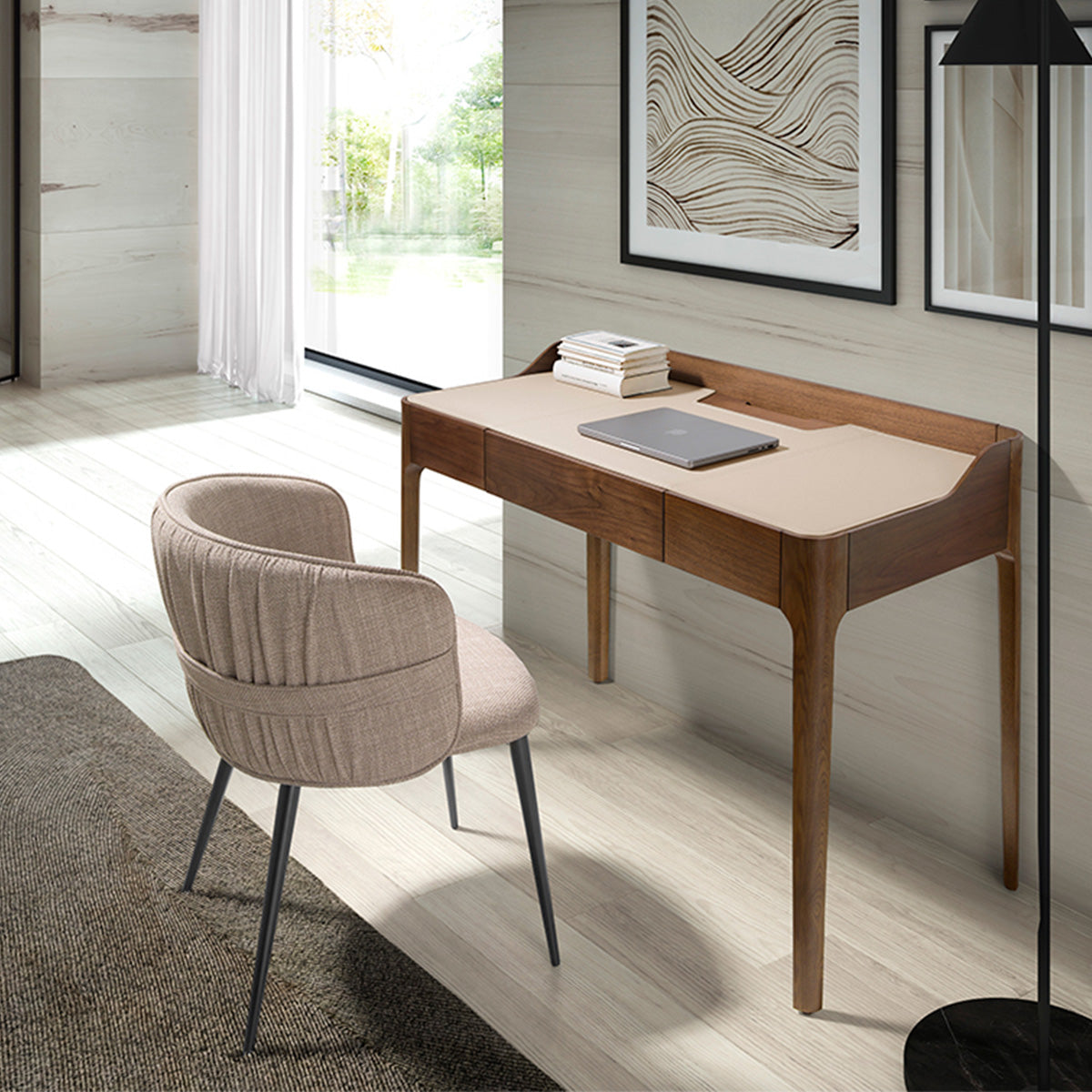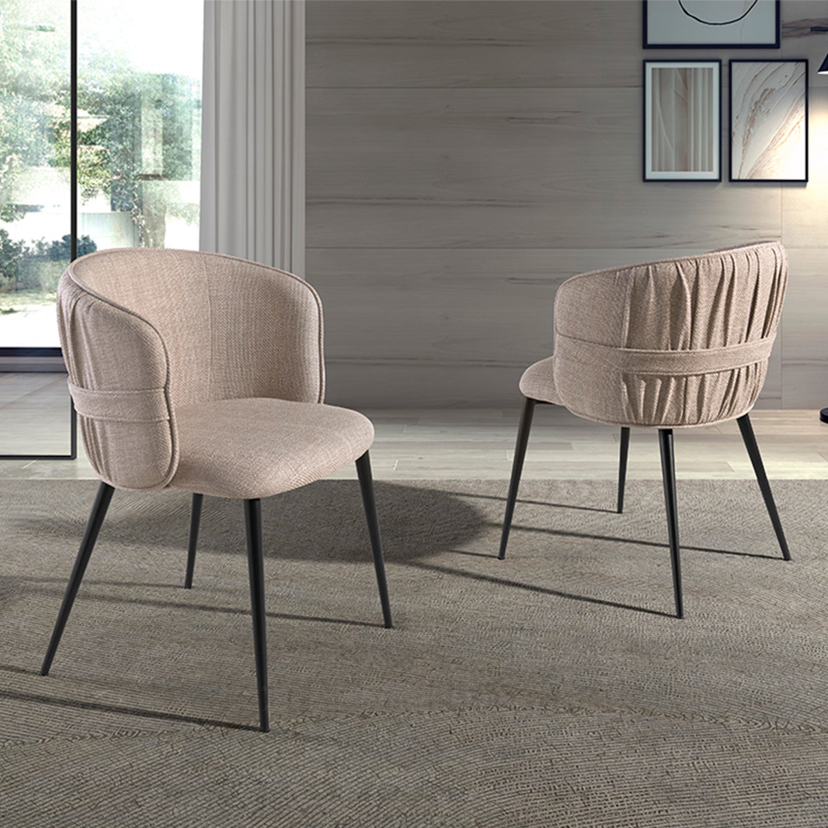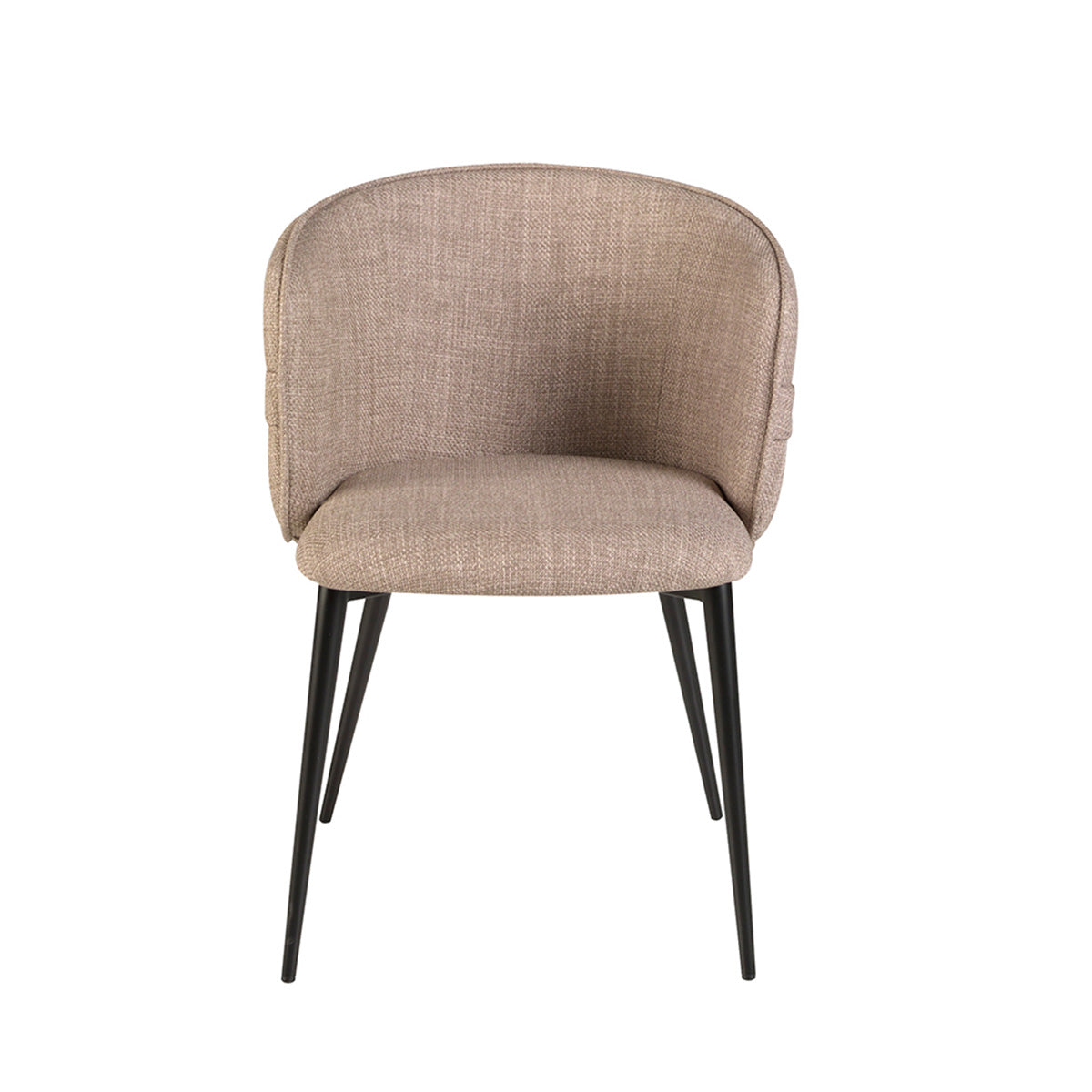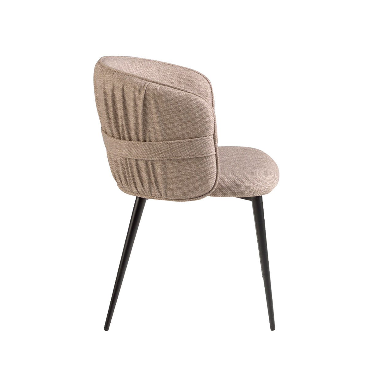 Sedia dal design moderno con seduta e schienale rivestiti in tessuto marrone. Le sue gambe in acciaio inox nero opaco, dallo stile avanguardista ma senza tempo, la renderanno un must per la vostra cucina o sala da pranzo. Questa sedia unisce lo stile unico al massimo comfort e stabilità, grazie all'alta qualità del rivestimento e alla struttura originale delle gambe.