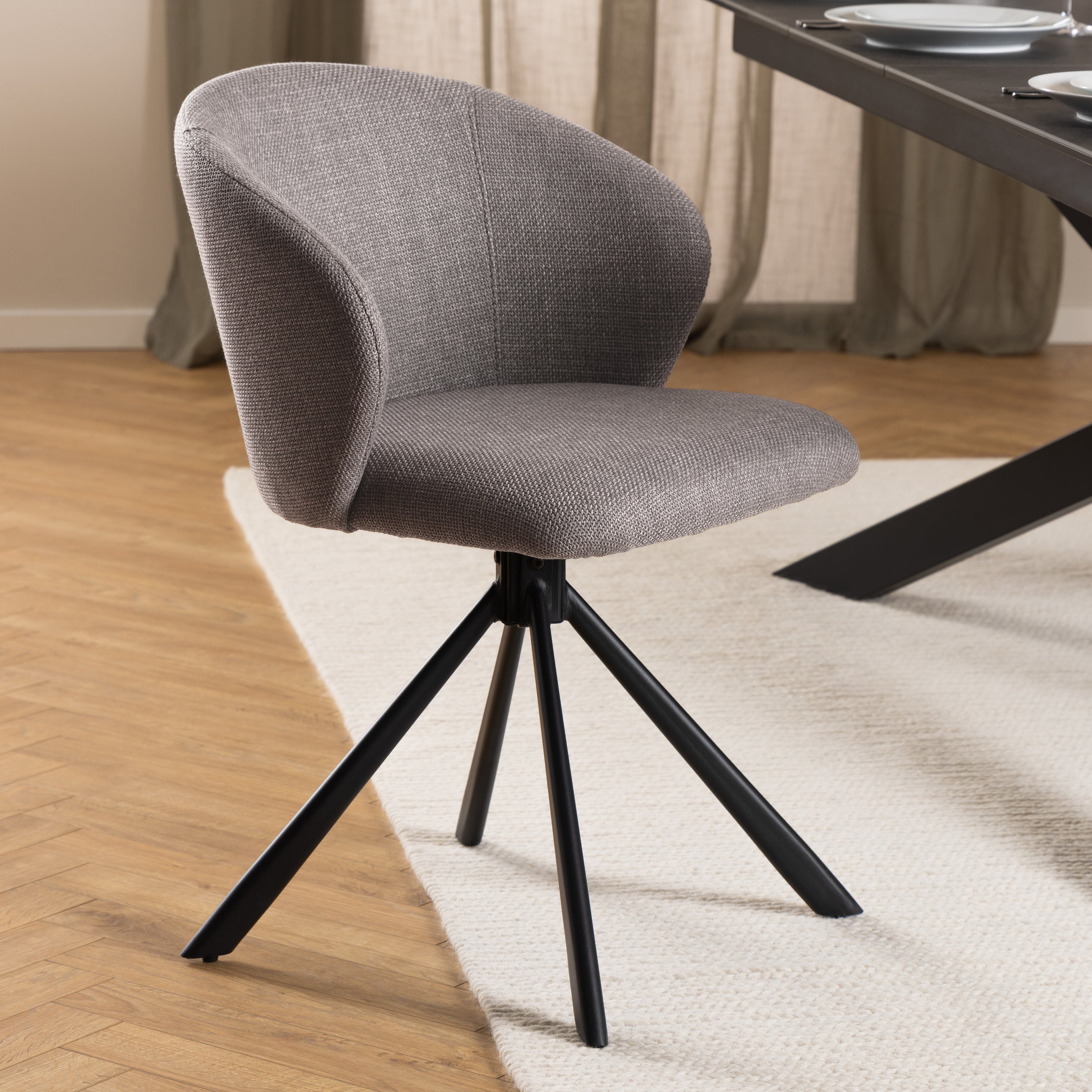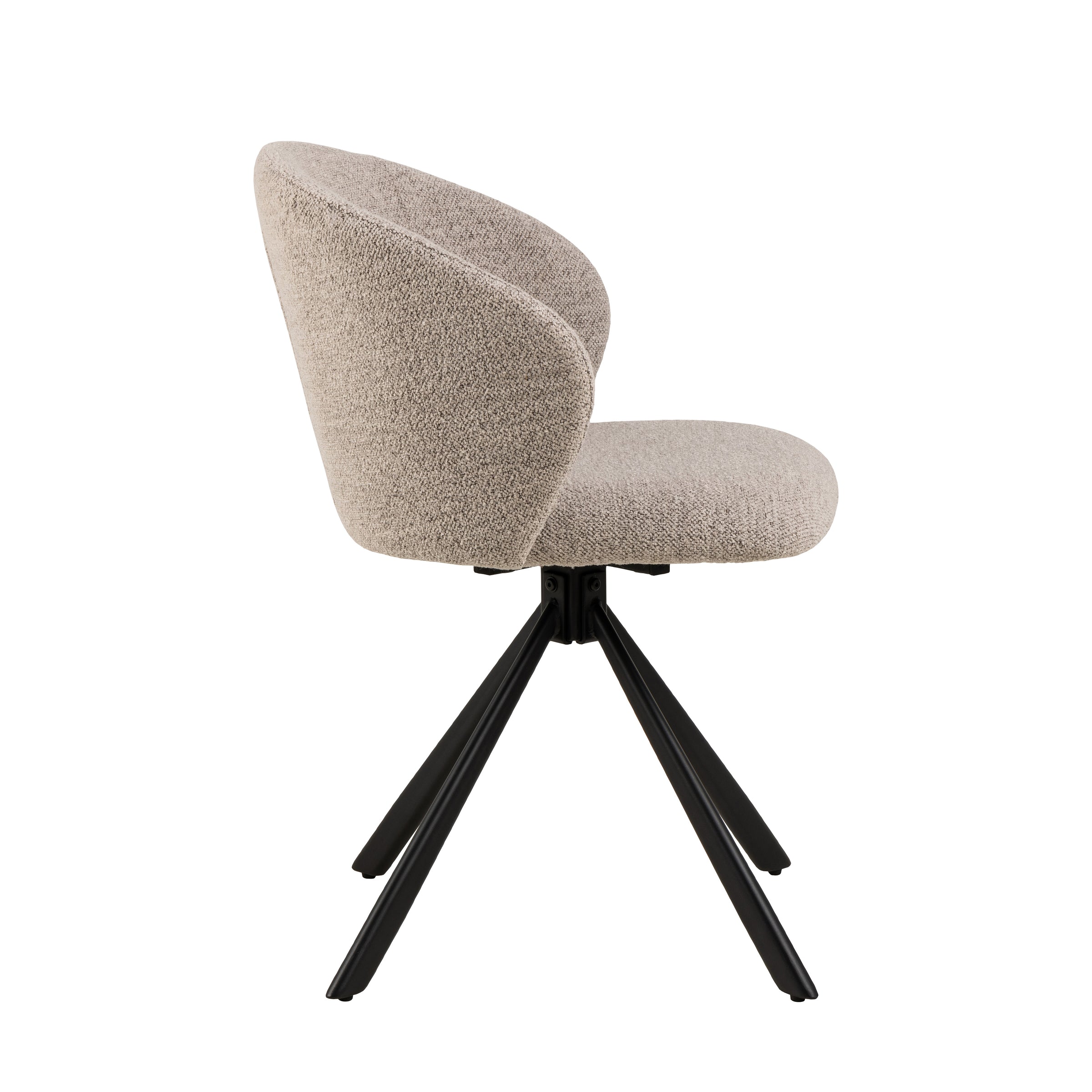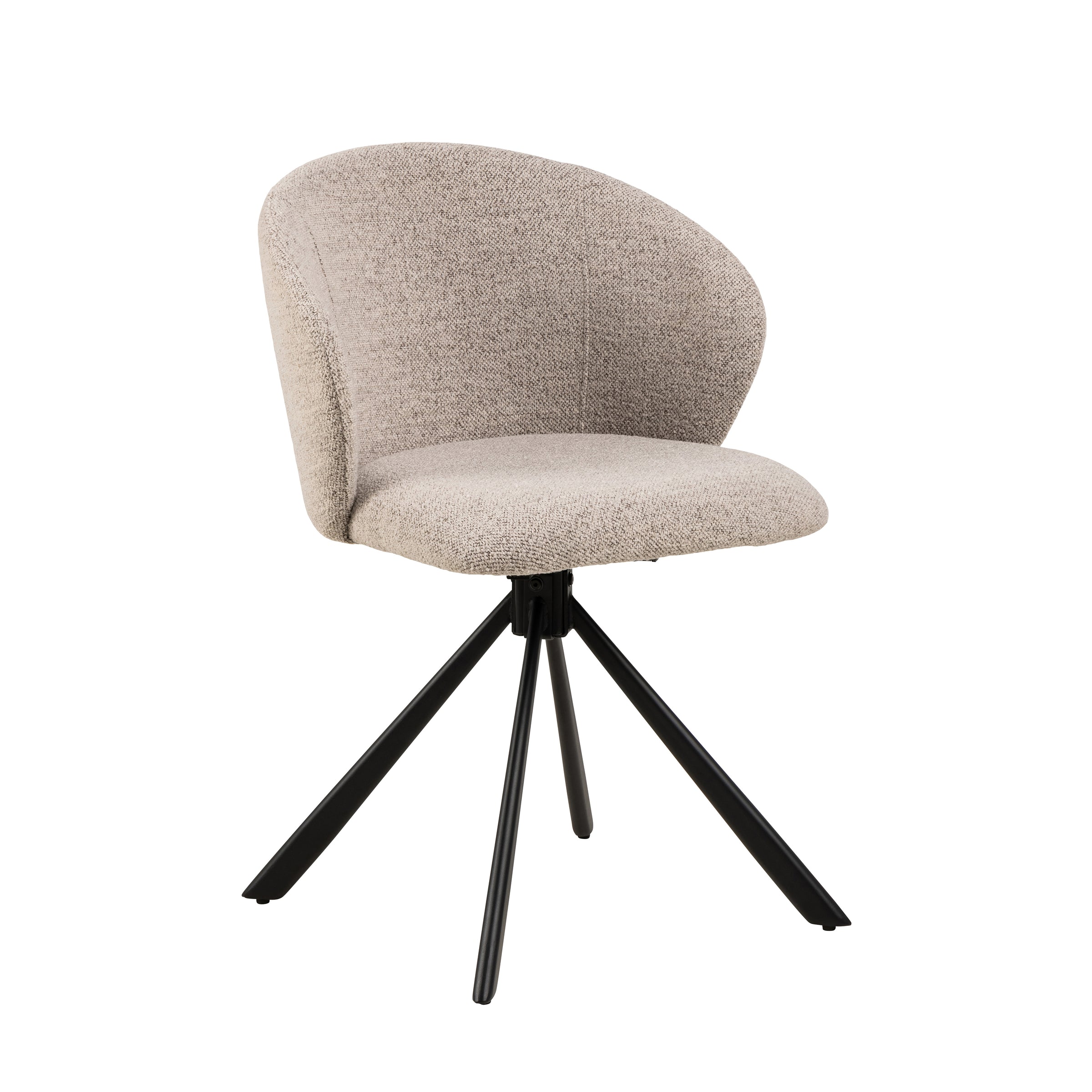 Grazie alla base girevole in sottile metallo nero, non dovrai più alzarti o spostare la sedia per muoverti, rendendo ogni momento a tavola più comodo. La seduta dalla forma organica con le sue curve femminili e le cuciture a 3 campi crea un look contemporaneo ed elegante.