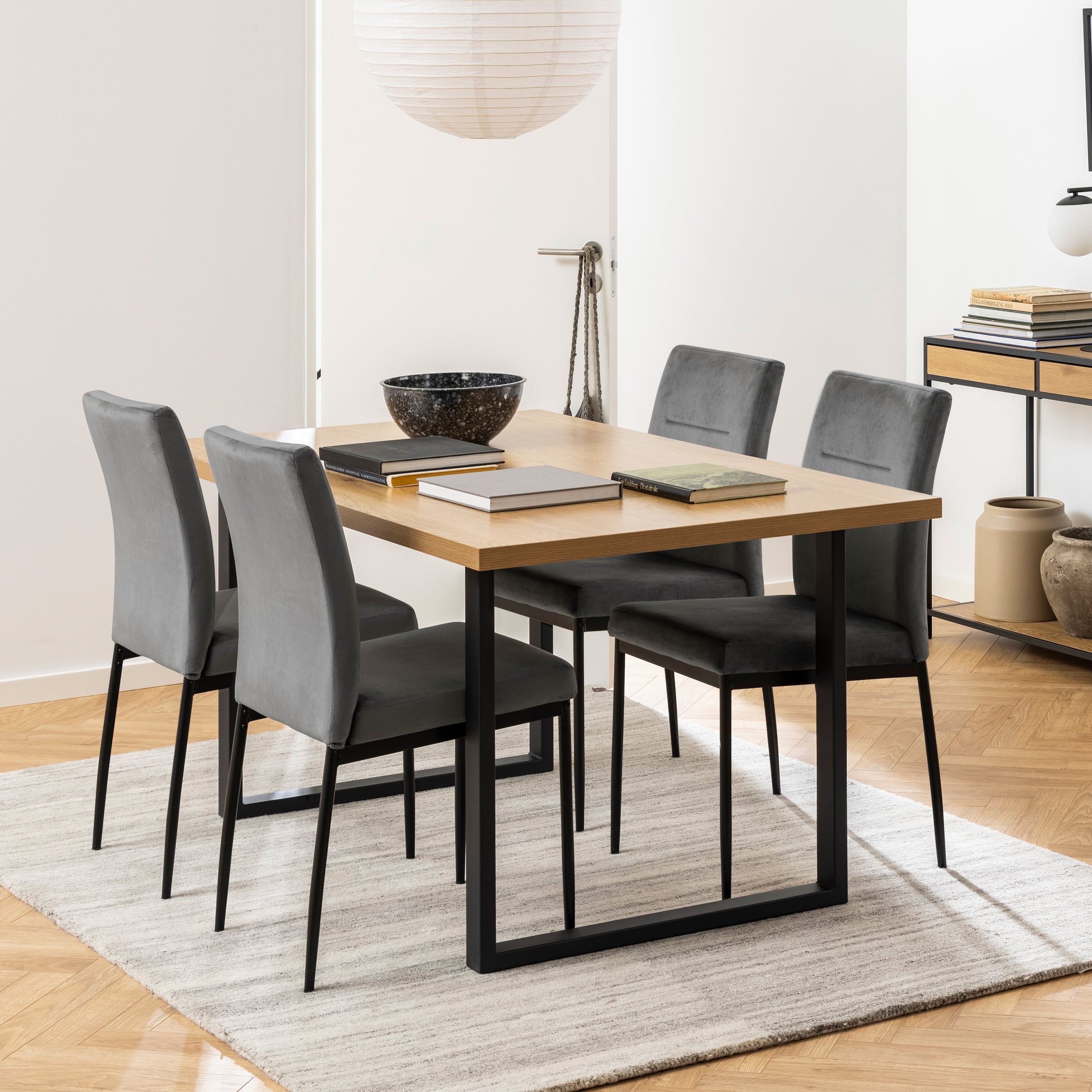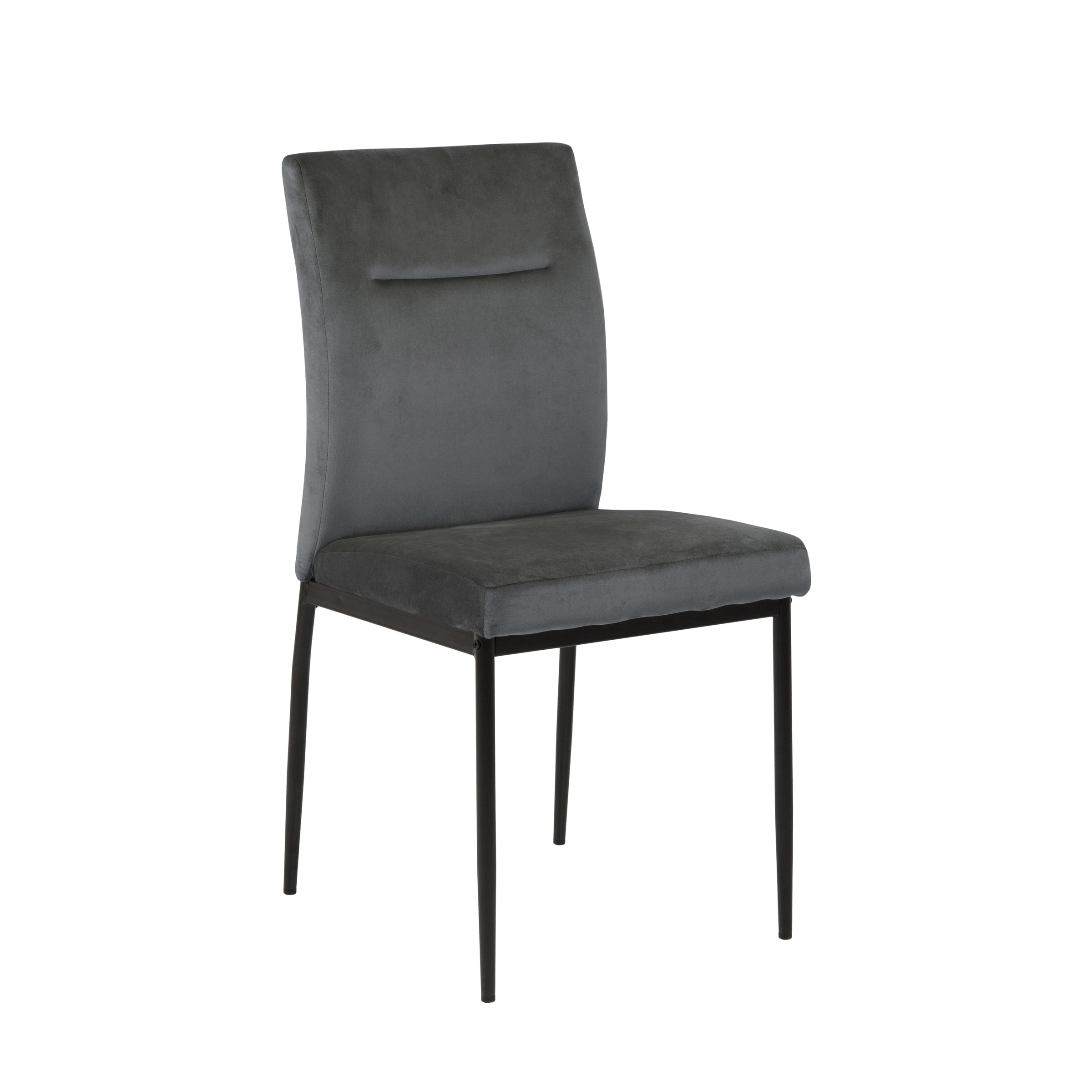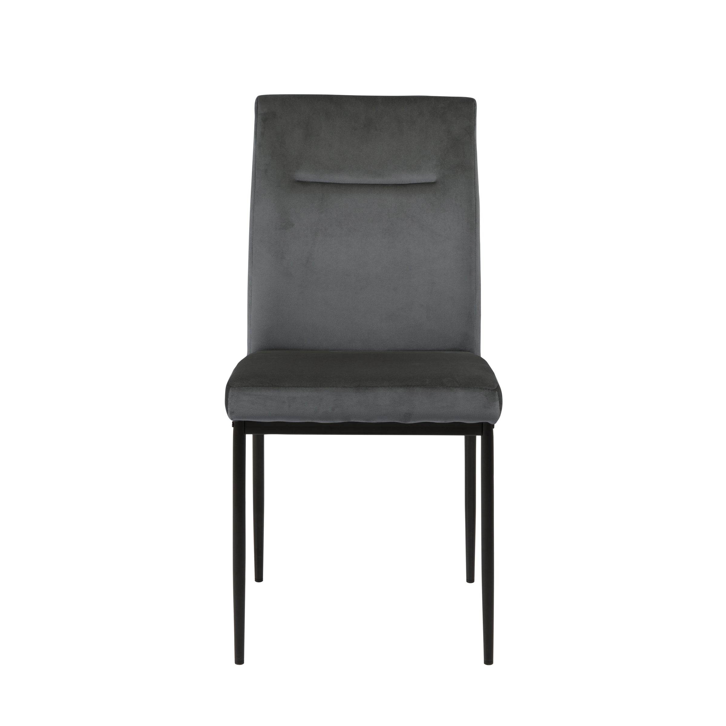 Il rivestimento in tessuto grigio, ricco e vibrante, non solo dona un tocco di colore alla tua sala da pranzo, ma offre anche una seduta confortevole e accogliente. Le gambe in metallo verniciato a polvere completano il design con la loro robustezza e un tocco di modernità.