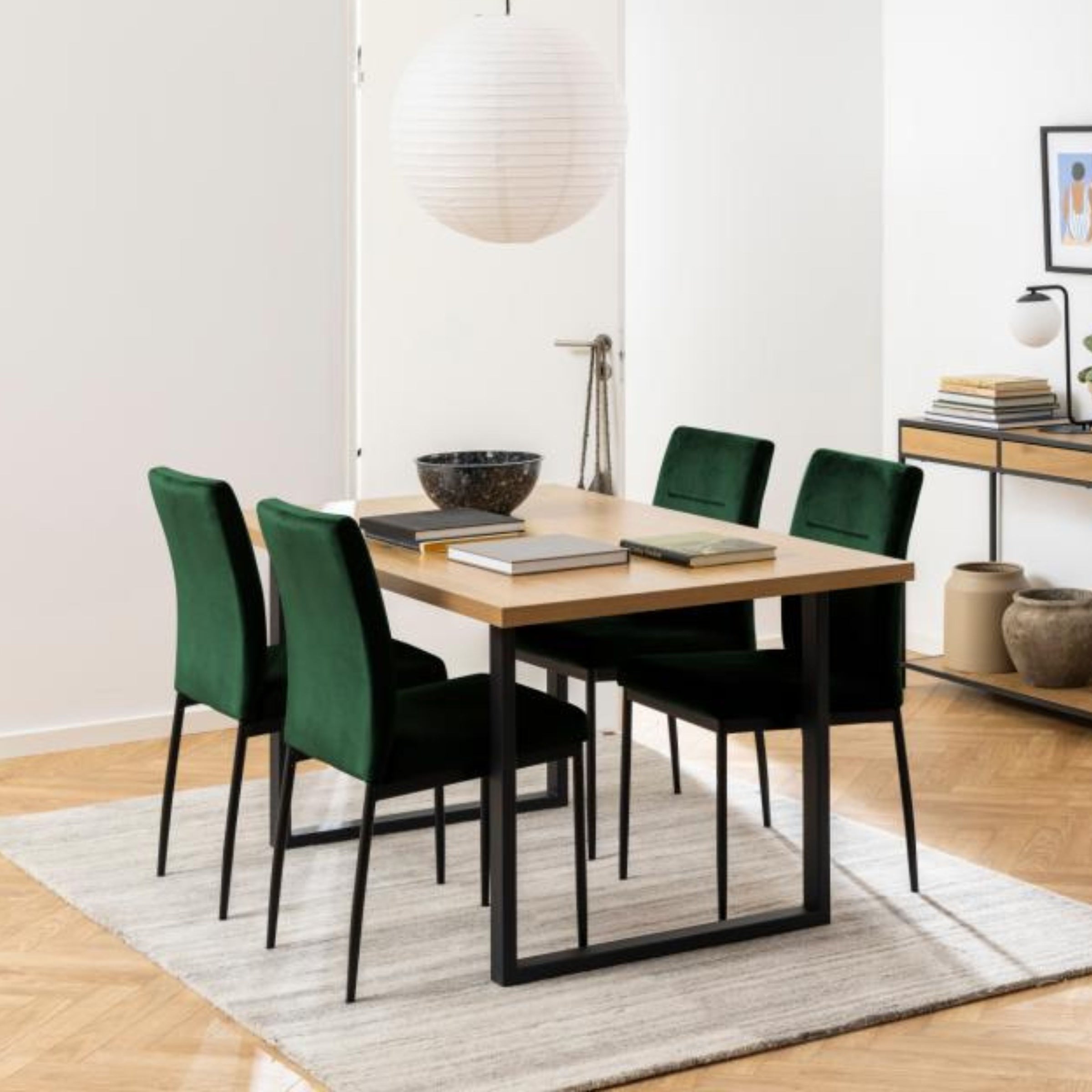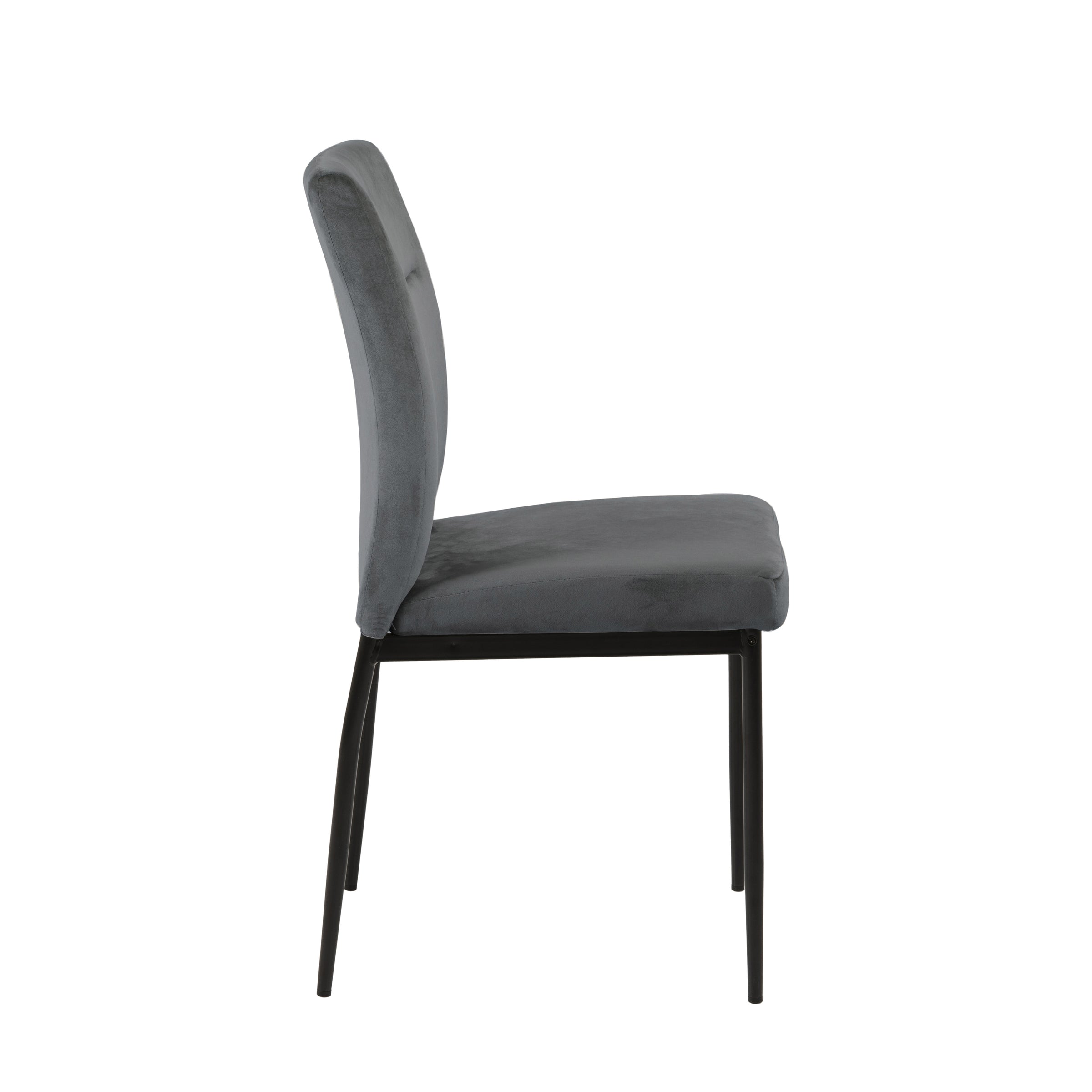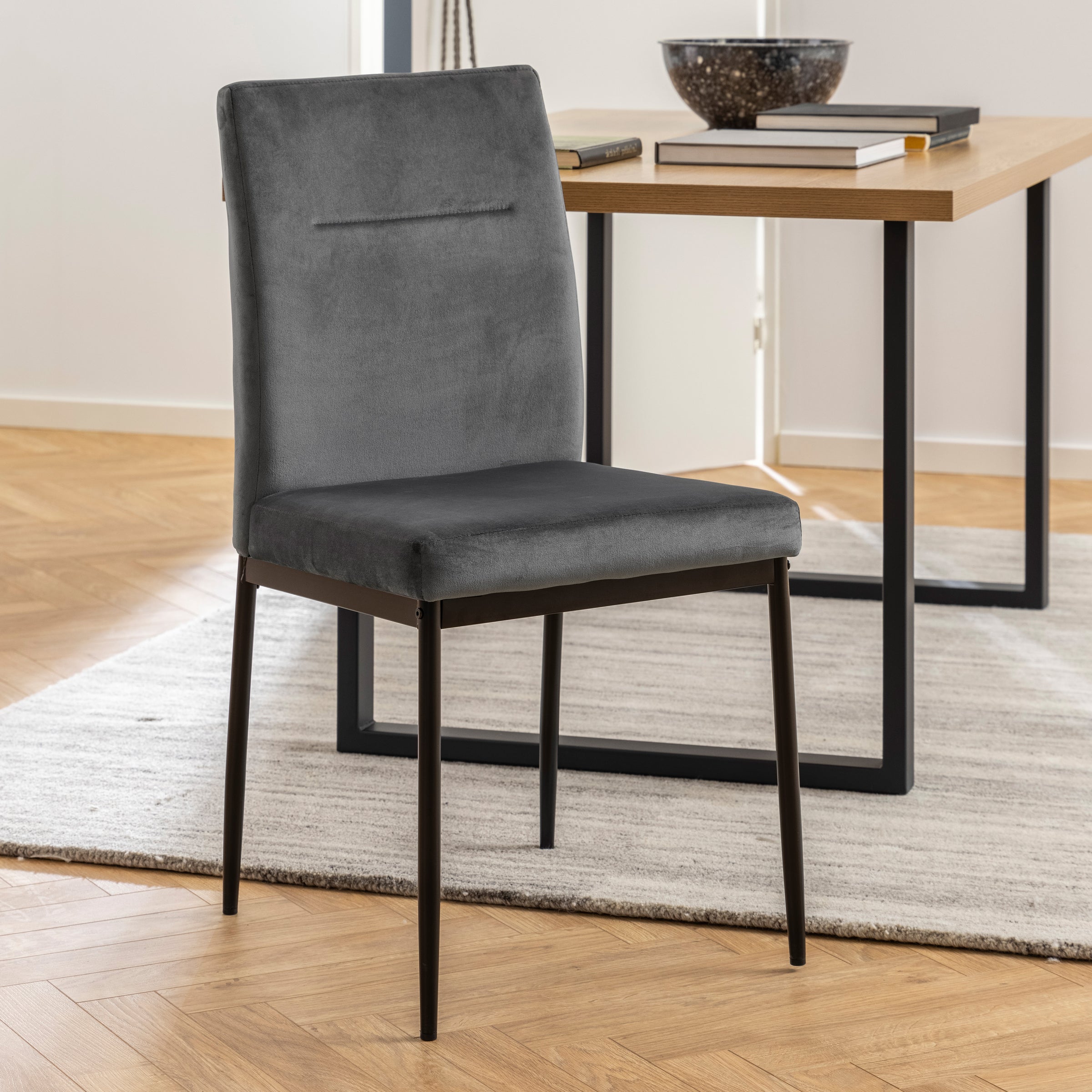 Il rivestimento in tessuto grigio, ricco e vibrante, non solo dona un tocco di colore alla tua sala da pranzo, ma offre anche una seduta confortevole e accogliente. Le gambe in metallo verniciato a polvere completano il design con la loro robustezza e un tocco di modernità.