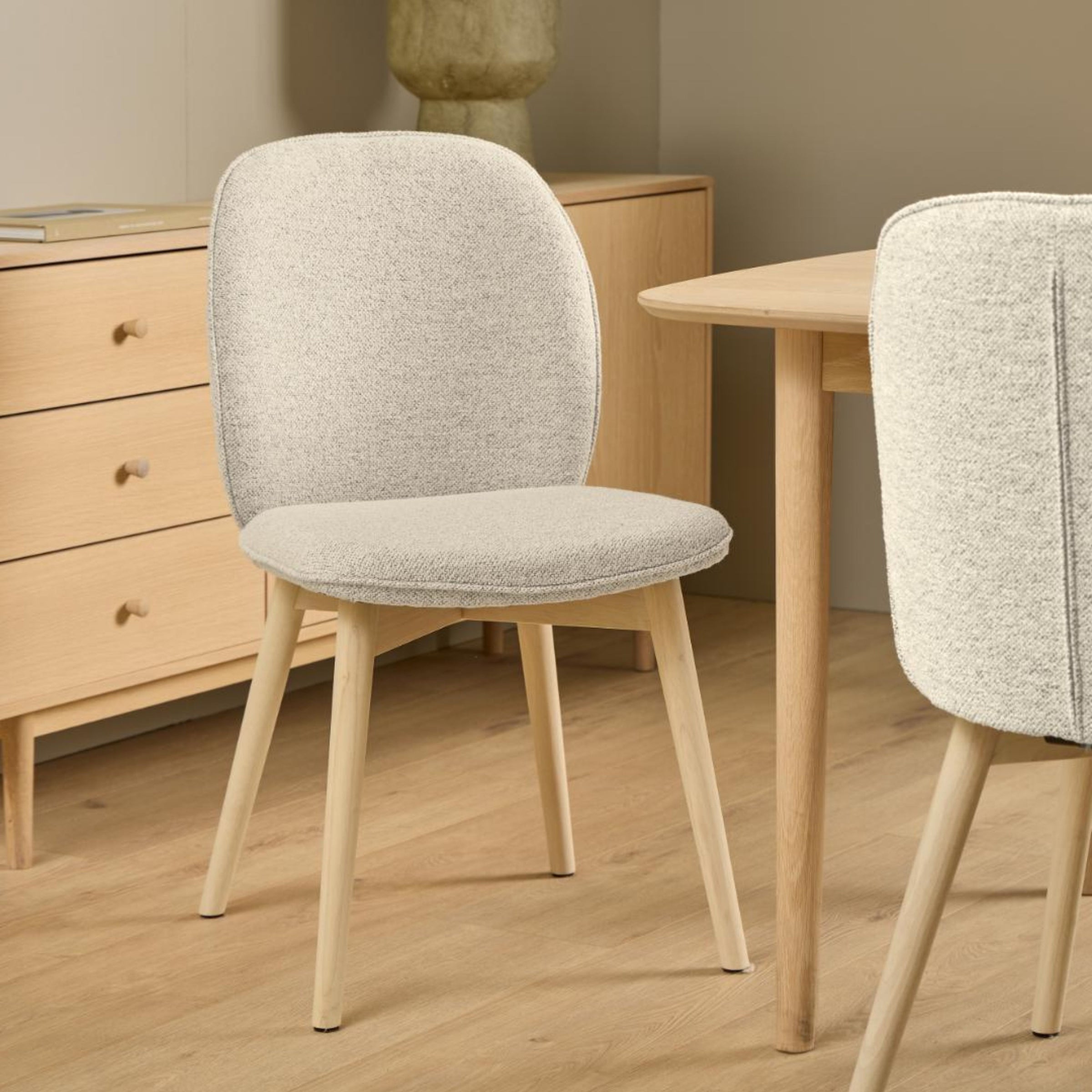 Le gambe in rovere oliato con una pigmentazione bianca non solo garantiscono una solida stabilità, ma conferiscono alla sedia un aspetto leggero e pulito, in perfetto stile scandinavo. Un'accoppiata vincente che rende questa sedia un must-have per chi cerca funzionalità, comfort e un'estetica raffinata.