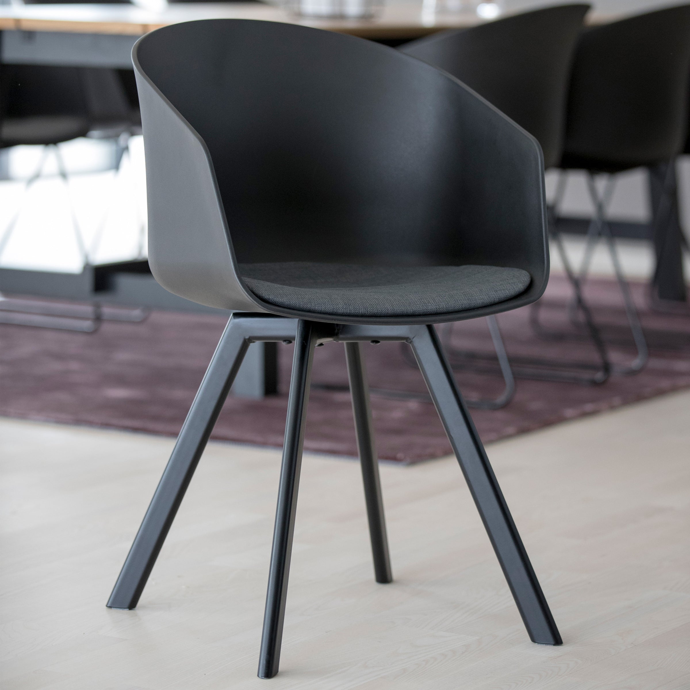 La scelta della base e scocca offre una gamma di appeal visivo che puoi utilizzare in tutti i tipi di ambienti, dal tavolo da pranzo al tuo ufficio. Il concept di Vienna presenta una sedia che unisce il comfort a un look moderno e scandinavo. Lasciati ispirare dalla scocca in polipropilene nere abbinata a una base in metallo verniciato nero e goditi il confort del cuscino fisso di colore grigio.