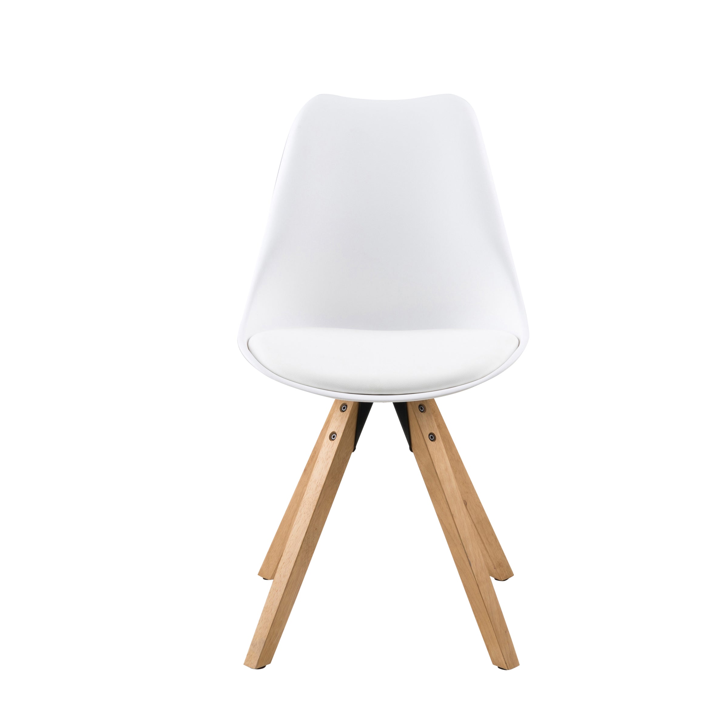 Colore | Scocca in polipropilene bianco - cuscino in ecopelle bianca - Gambe in legno rovere