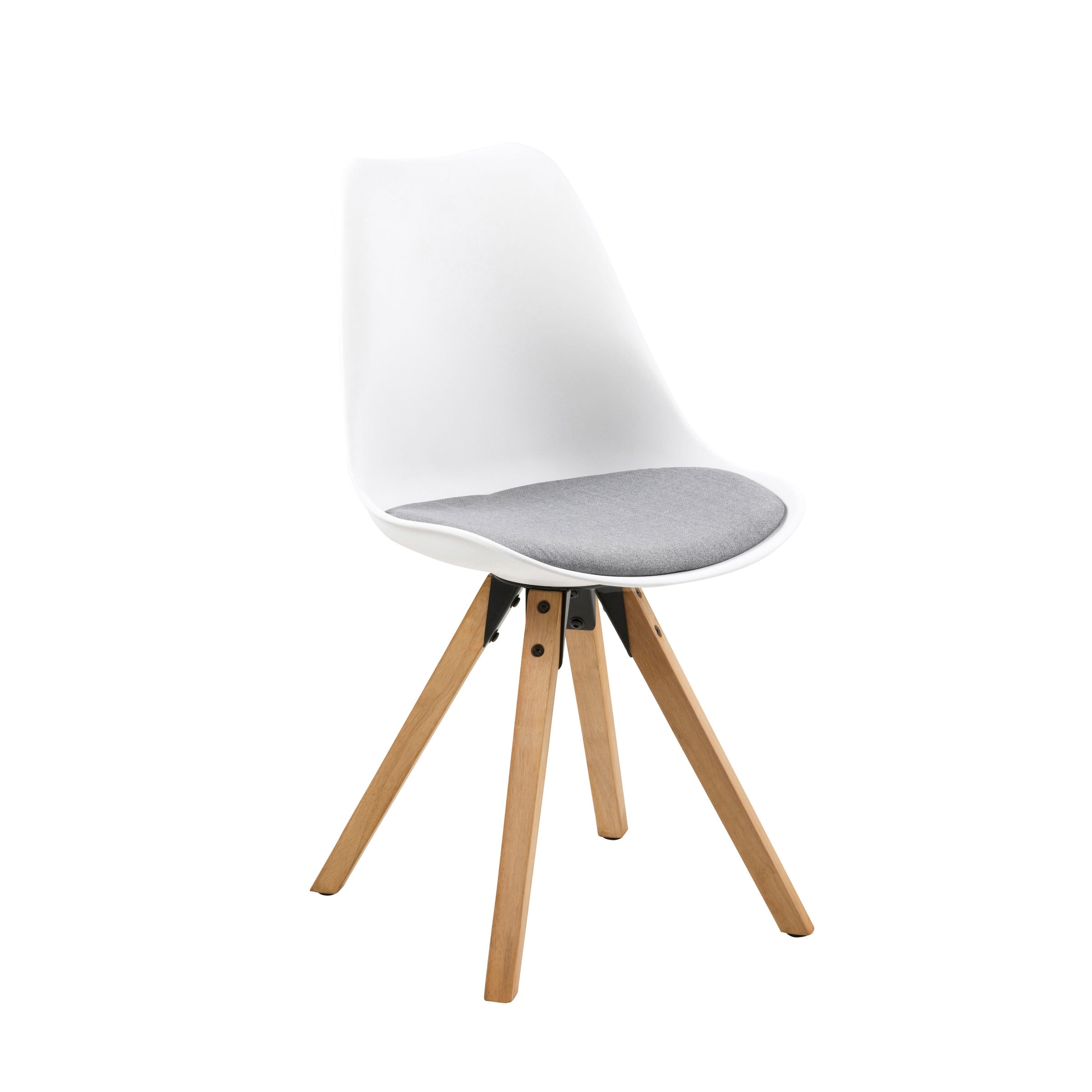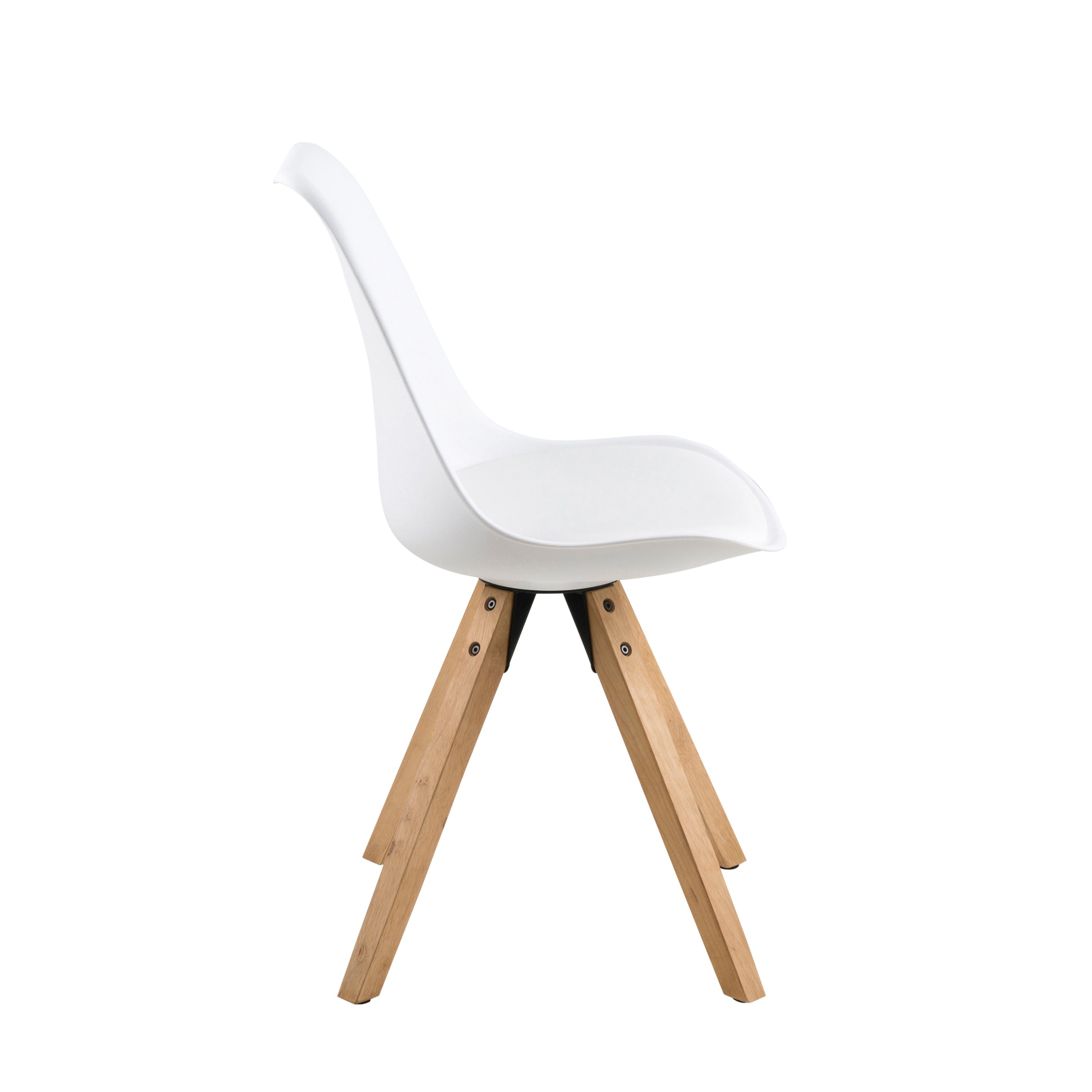 • Variante: Scocca in polipropilene bianco - cuscino in ecopelle bianca - Gambe in legno rovere