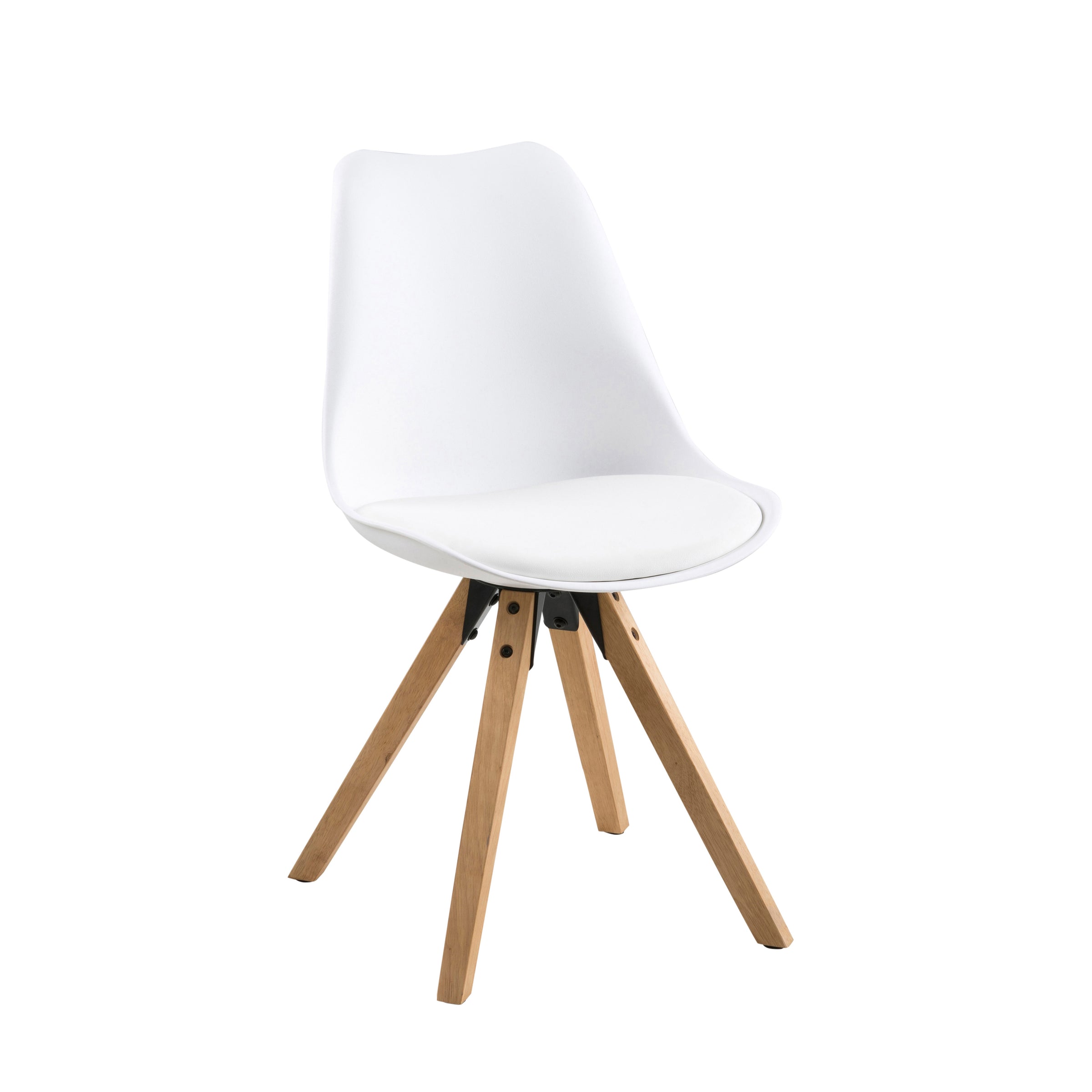 Scocca in polipropilene bianco - cuscino in ecopelle bianca - Gambe in legno rovere